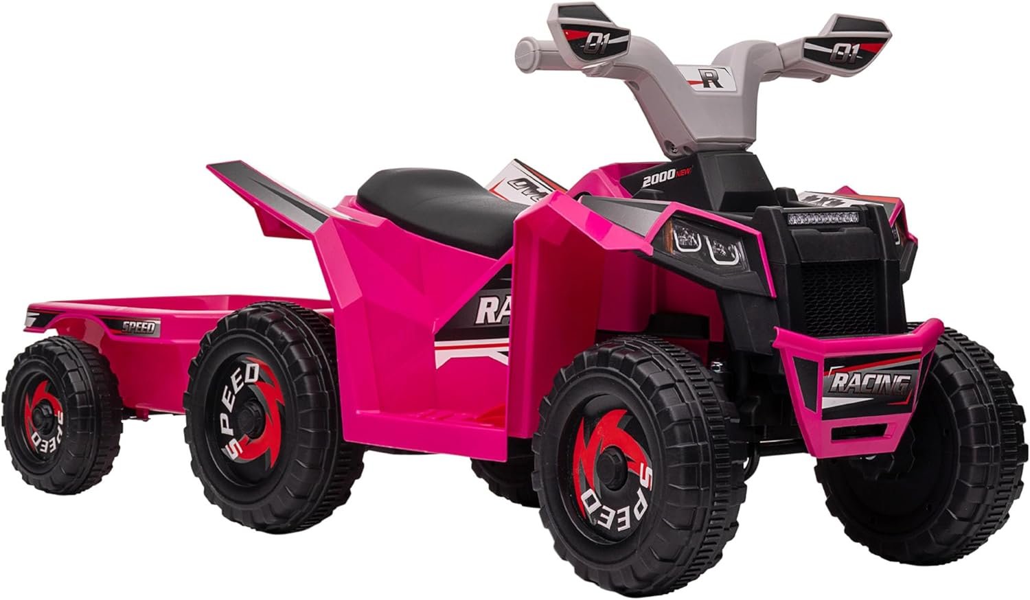 Ignite the spirit of adventure with an Aosom toddler ATV. Crafted for young explorers, this quad promises a thrilling and safe ride, enhancing motor skills and confidence. Unleash the explorer within; this model has an added back trailer for fun and utility. Watch your child’s face light up as they conquer terrain, fostering independence and a sense of discovery. Elevate outdoor play with an electric ATV, and let the adventures begin.