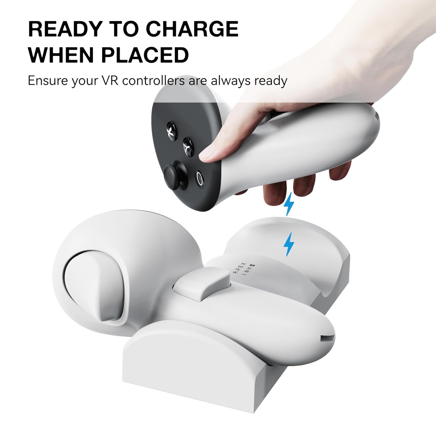 Effortless Charging for Oculus Quest 3 Controllers – Simply place your controllers onto the charging dock to charge. (Note: Not suitable for controller protective covers)