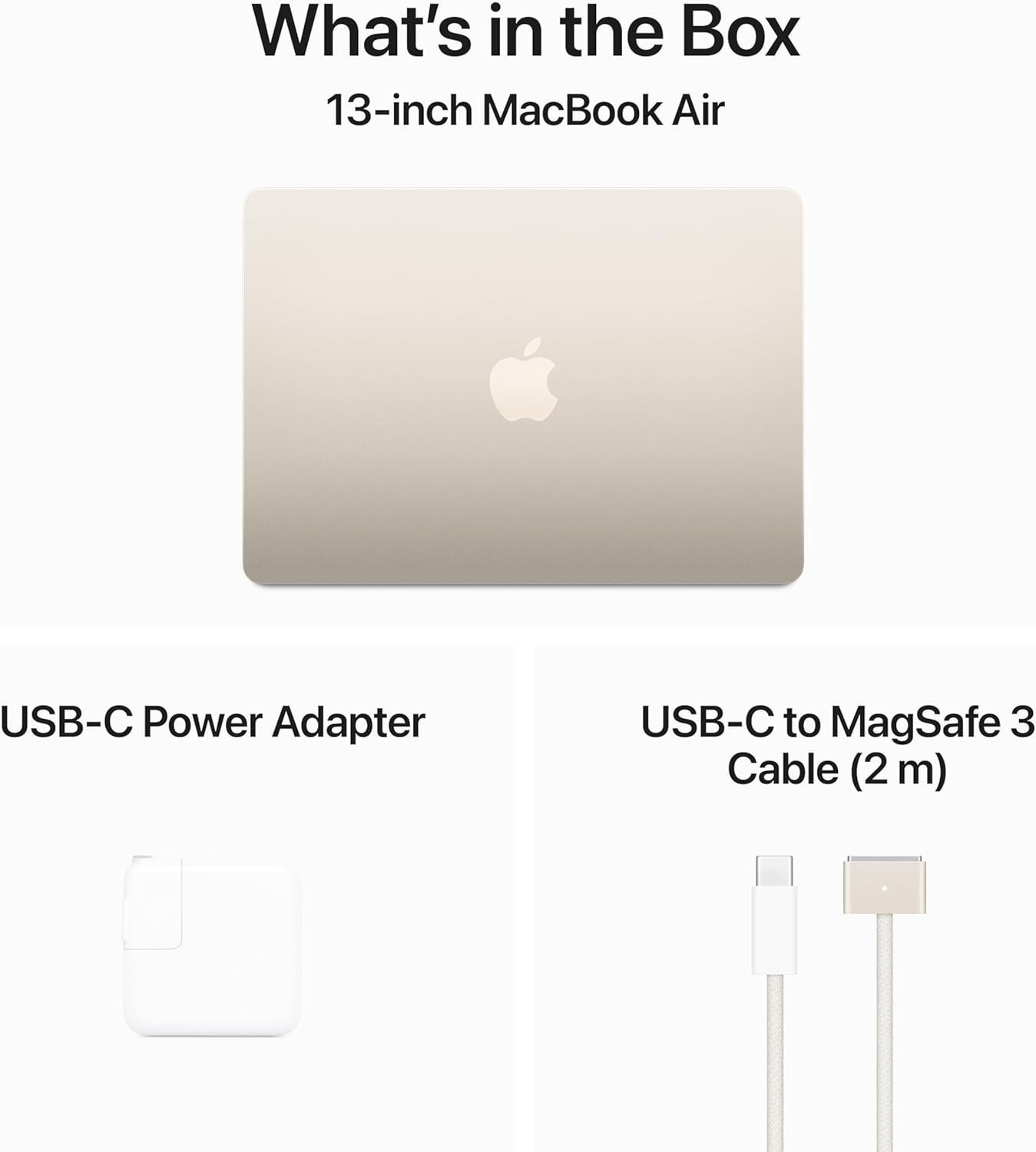 MacBook Air 13″. Lean. Mean. M3 machine. The M3 chip brings even greater capabilities to the superportable 13-inch MacBook Air. With up to 18 hours of battery life, you can take it anywhere and blaze through work and play. MEAN. M3 MACHINE–The blazing-fast MacBook Air with the M3 chip is a superportable laptop that sails through work and play. PORTABLE DESIGN–Lightweight and under half an inch thin, so you can take MacBook Air anywhere you go. GET MORE DONE FASTER–The powerful 8-core CPU and up to 10-core GPU of the Apple M3 chip keep things running smoothly. UP TO 18 HOURS OF BATTERY LIFE–Amazing, all-day battery life so you can leave the power adapter at home. A BRILLIANT DISPLAY–The 13.6-inch Liquid Retina display supports one billion colors. LOOK SHARP, SOUND GREAT–Everything looks and sounds amazing with a 1080p FaceTime HD camera, three mics, and four speakers with Spatial Audio. APPS FLY WITH APPLE SILICON–All your favorites, from Microsoft 365 to Adobe Creative Cloud, run lightning fast in macOS. GET CONNECTED–MacBook Air features two Thunderbolt ports, a headphone jack, Wi-Fi 6E, Bluetooth 5.3, and a MagSafe charging port. And connect up to two external displays with the laptop lid closed. IF YOU LOVE IPHONE, YOU’LL LOVE MAC–MacBook Air works like magic with your other Apple devices. Start an email on your iPhone and finish it on your Mac. Send text messages from your Mac. And much more. Legal Configurable options are available. Battery life varies by use and configuration. The display on the 13-inch MacBook Air has rounded corners at the top. When measured as a standard rectangular shape, the screen is 13.6 inches diagonally (actual viewable area is less). Apps are available on the App Store. Wi-Fi 6E available in countries and regions where supported.