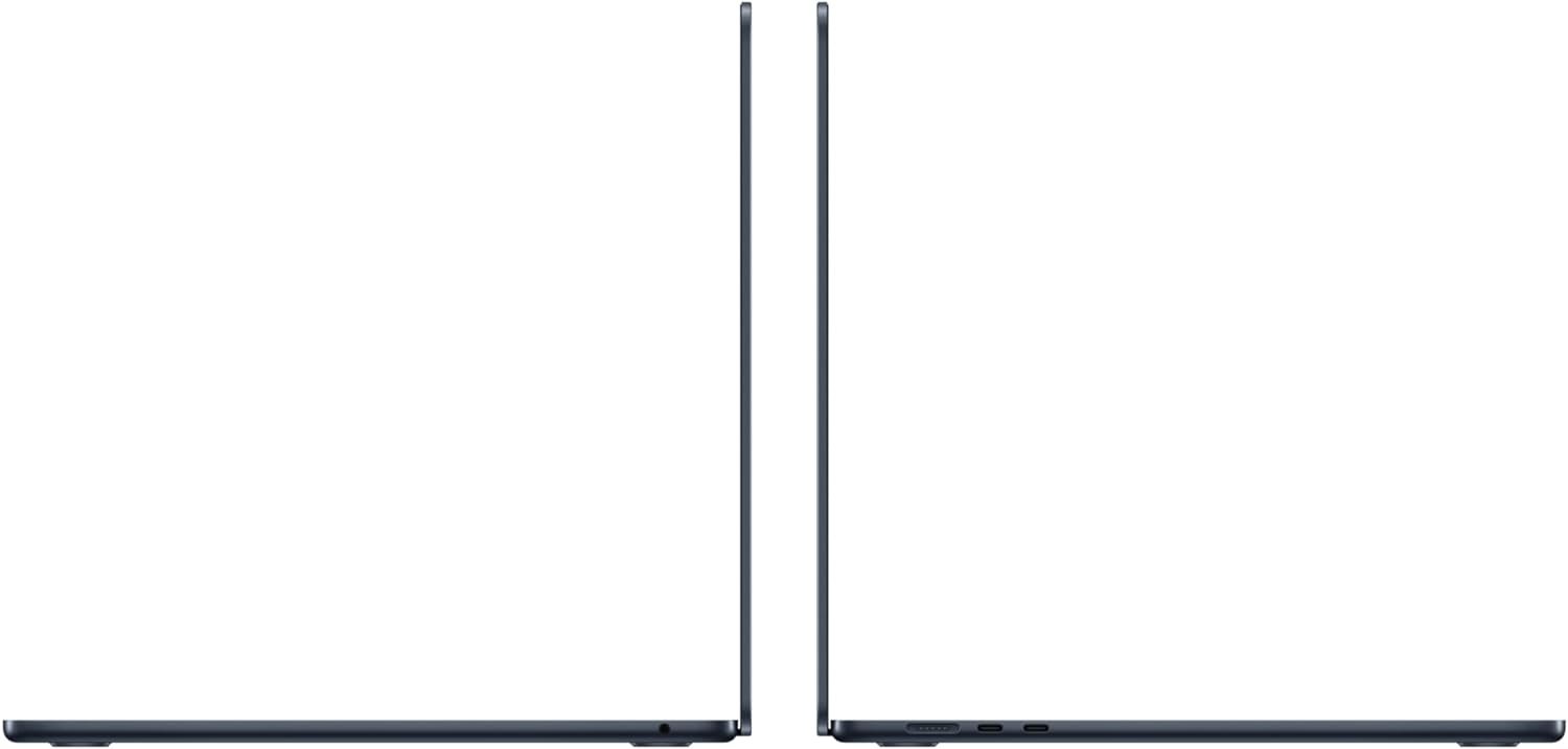 MacBook Air 15″. Lean. Mean. M3 machine. The M3 chip brings even greater capabilities to the superportable 15-inch MacBook Air. With up to 18 hours of battery life and a spacious Liquid Retina display, you can take it anywhere and blaze through work and play. MEAN. M3 MACHINE–The blazing-fast MacBook Air with the M3 chip is a superportable laptop that sails through work and play. PORTABLE DESIGN–Lightweight and under half an inch thin, so you can take MacBook Air anywhere you go. GET MORE DONE FASTER–The powerful 8-core CPU and 10-core GPU of the Apple M3 chip keep things running smoothly. UP TO 18 HOURS OF BATTERY LIFE1–Amazing, all-day battery life so you can leave the power adapter at home. MORE ROOM FOR WHAT YOU LOVE–The 15.3-inch Liquid Retina display supports one billion colors. LOOK SHARP, SOUND GREAT–Everything looks and sounds amazing with a 1080p FaceTime HD camera, three mics, and six speakers with Spatial Audio. APPS FLY WITH APPLE SILICON–All your favorites, from Microsoft 365 to Adobe Creative Cloud, run lightning fast in macOS. GET CONNECTED–MacBook Air features two Thunderbolt ports, a headphone jack, Wi-Fi 6E, Bluetooth 5.3, and a MagSafe charging port. And connect up to two external displays with the laptop lid closed. IF YOU LOVE IPHONE, YOU’LL LOVE MAC–MacBook Air works like magic with your other Apple devices. Start an email on your iPhone and finish it on your Mac. Send text messages from your Mac. And much more.