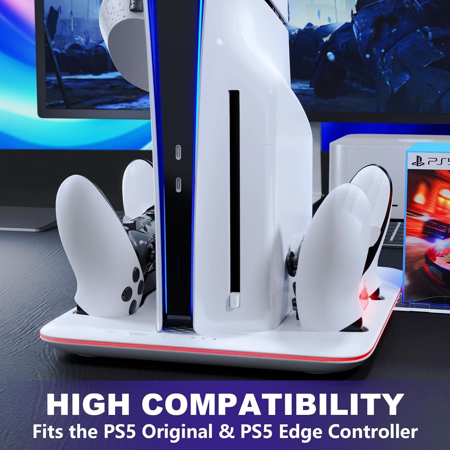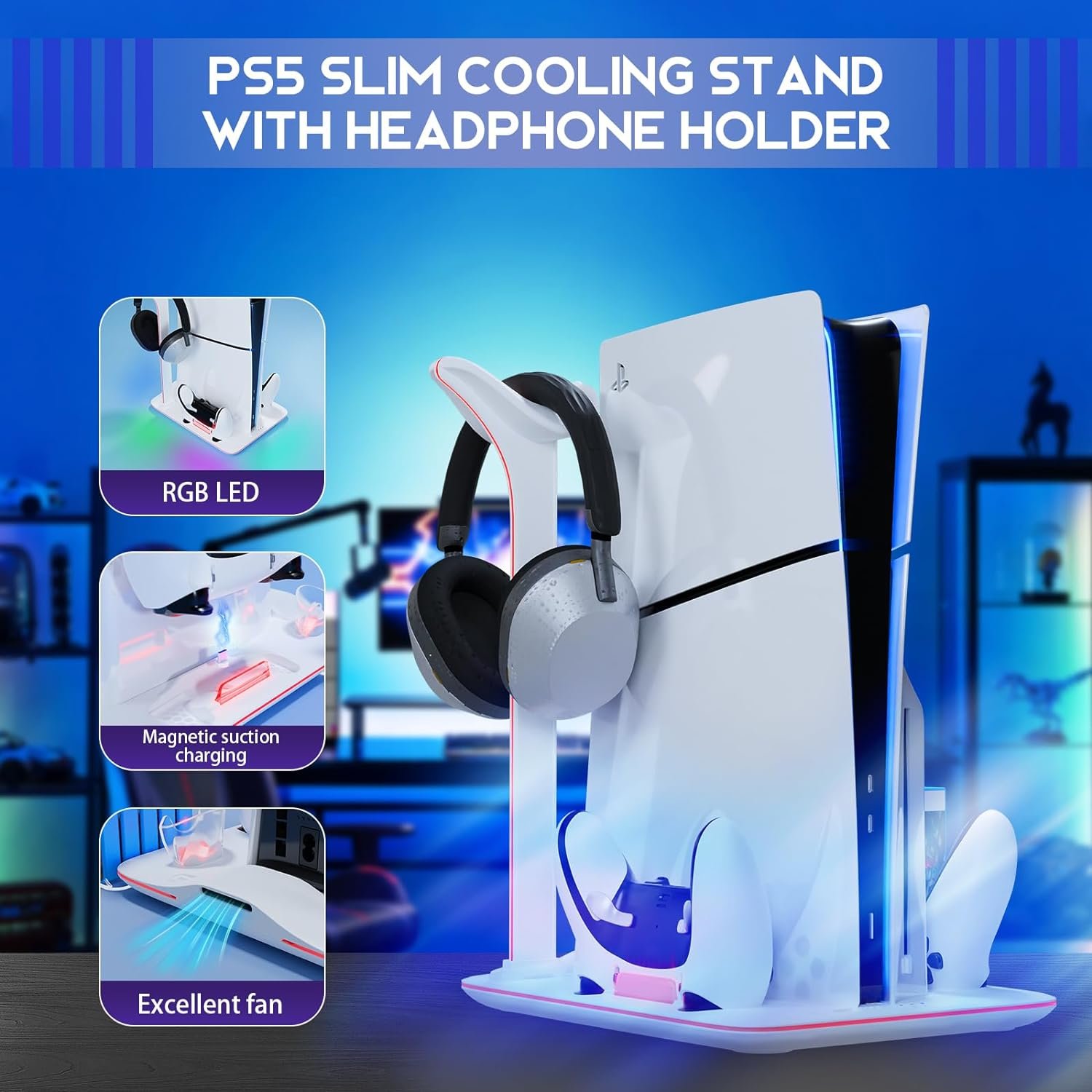 【SPECIALLY DESIGNED FOR PS5 SLIM (DIGITAL/DISC)】: In Addition To Being Compatible With The Latest Version Of PS5 Slim Digital Version And Disc Version, This PS5 Slim Stand Is Also Compatible With PS5 Dualsense And PS5 Dualsense Edge Controller, And Comes With A Strap For Connecting PS5 Slim Security Screws For The Main Unit. Of Course, What’S More Important Is That This Product Is Also Equipped With An Independent Headphone Stand, Which Allows You To Place Your Headphones More Conveniently.