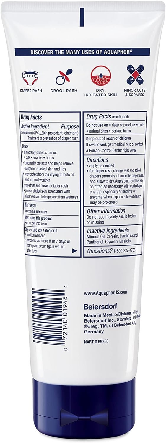 DIAPER RASH PREVENTION: Use Aquaphor Ointment as a preventative diaper rash ointment and apply with every diaper change to protect the skin from wetness, acidity and chafing to help avoid rashes