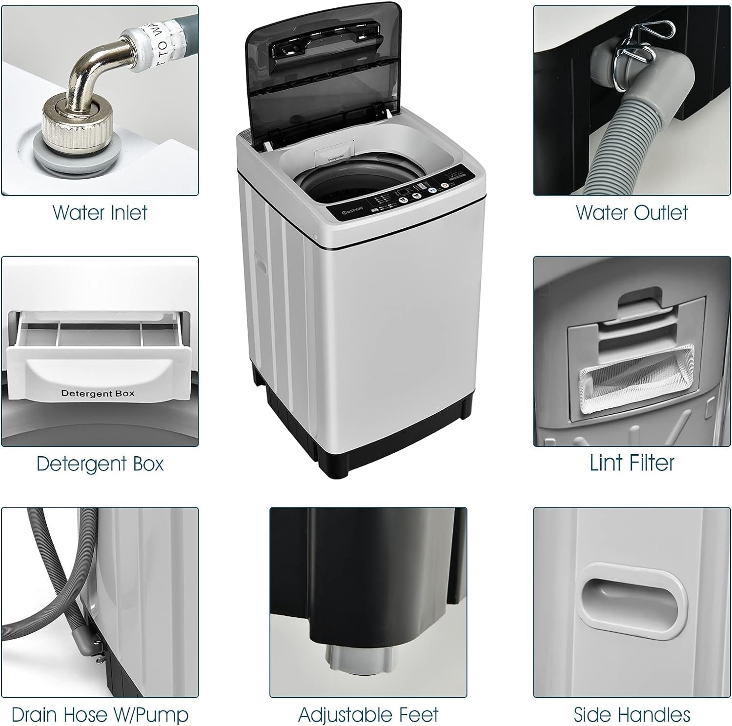 👖Powerful Performance – The full-automatic washer machine features a 720 RPM powerful motor with a max frequency of 60Hz.Ultrasonic turbine adopts to advanced high-frequency vibration, 360 degrees forward reverse cleaning, deep clean. A 300 W washing power, a spinner power of 250 W, and 1.5 Cu. Ft 11lbs large capacity for washing more clothes at once. This mini washer manages to remove even the toughest stains, and although it’s small, it is remarkably powerful and works quietly.