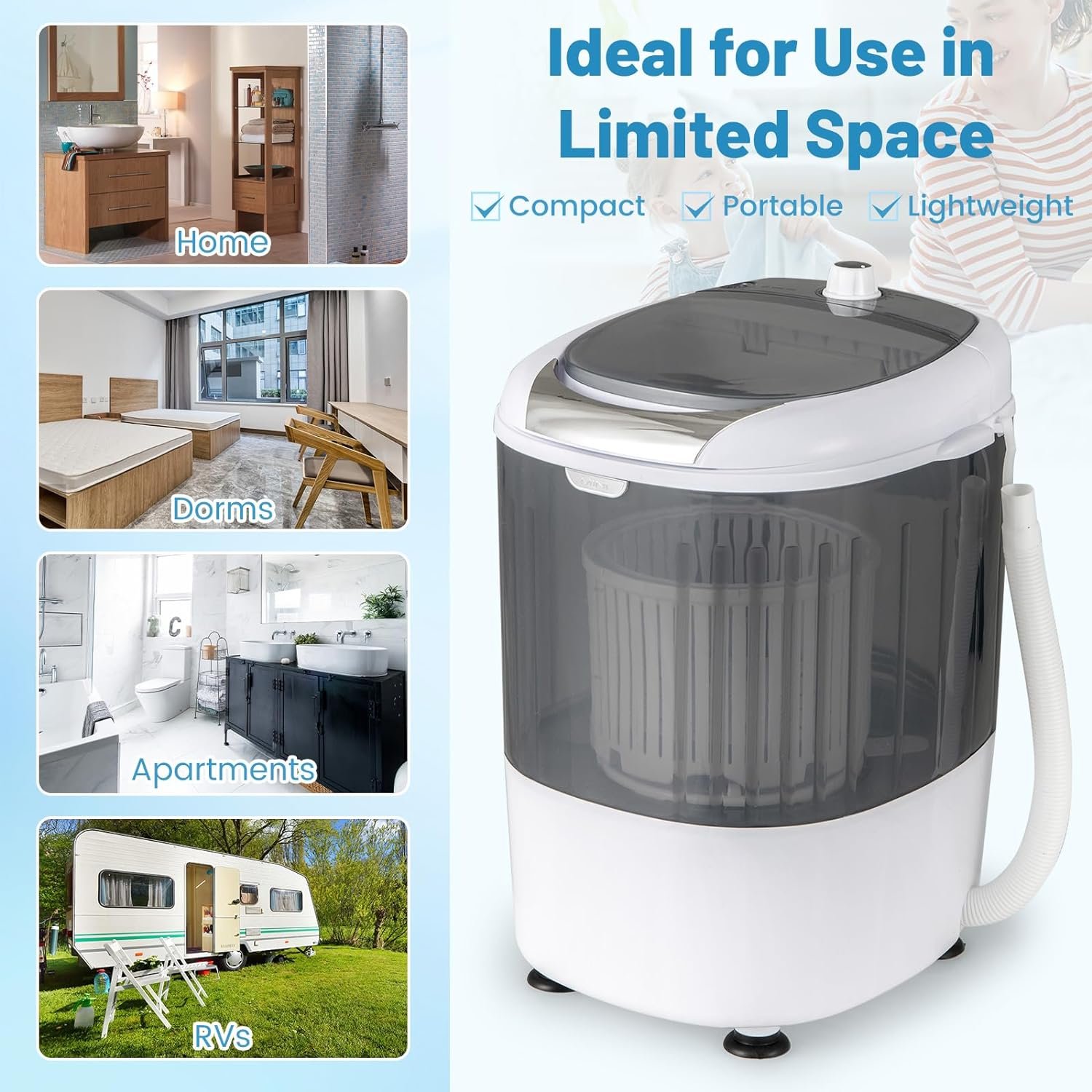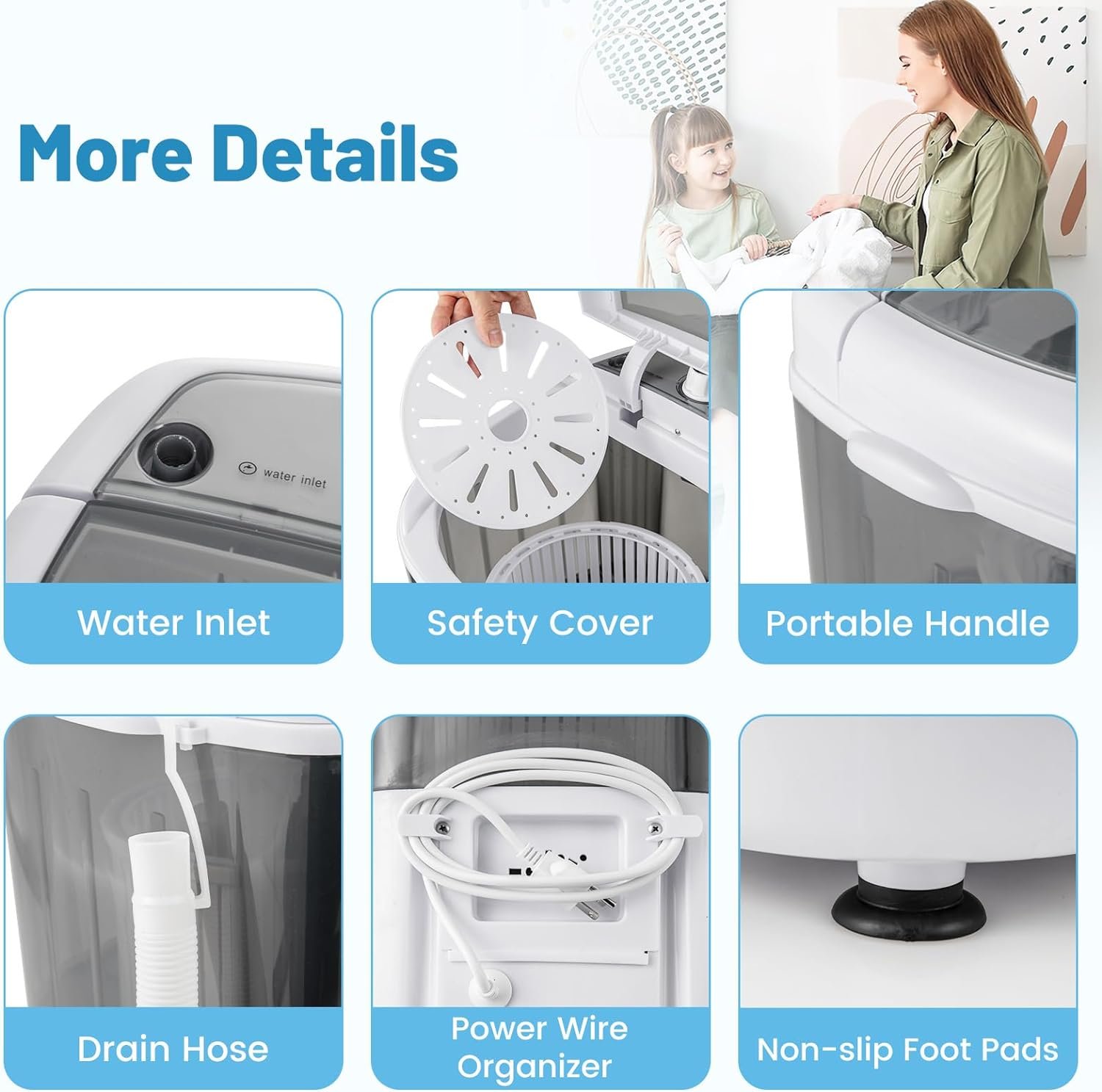 💡【Perfect for small garments】: This washing machine is ideal for washing small items such as T-shirts, socks, and undergarments. The 2-in-1 function allows for use as both a washing machine and spin-dryer, with the option to spin dry undergarments separately.