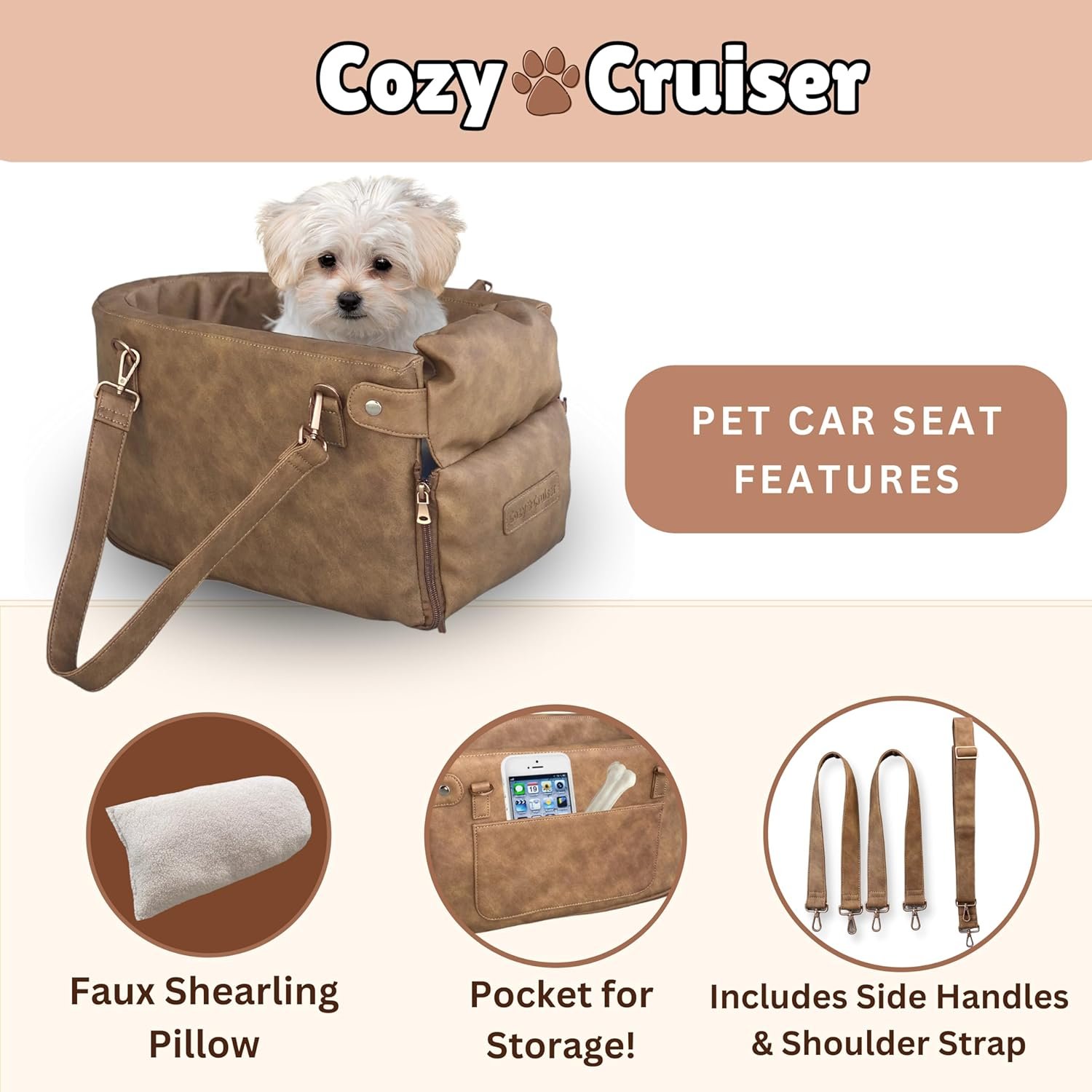 PREMIUM QUALITY- Our Cozy Cruiser car seat is made of high quality PU leather while the soft, fabric pillow provides your pet with a comfortable ride. The elevated design provides your pet with a cozy and secure perch on your vehicle’s center console