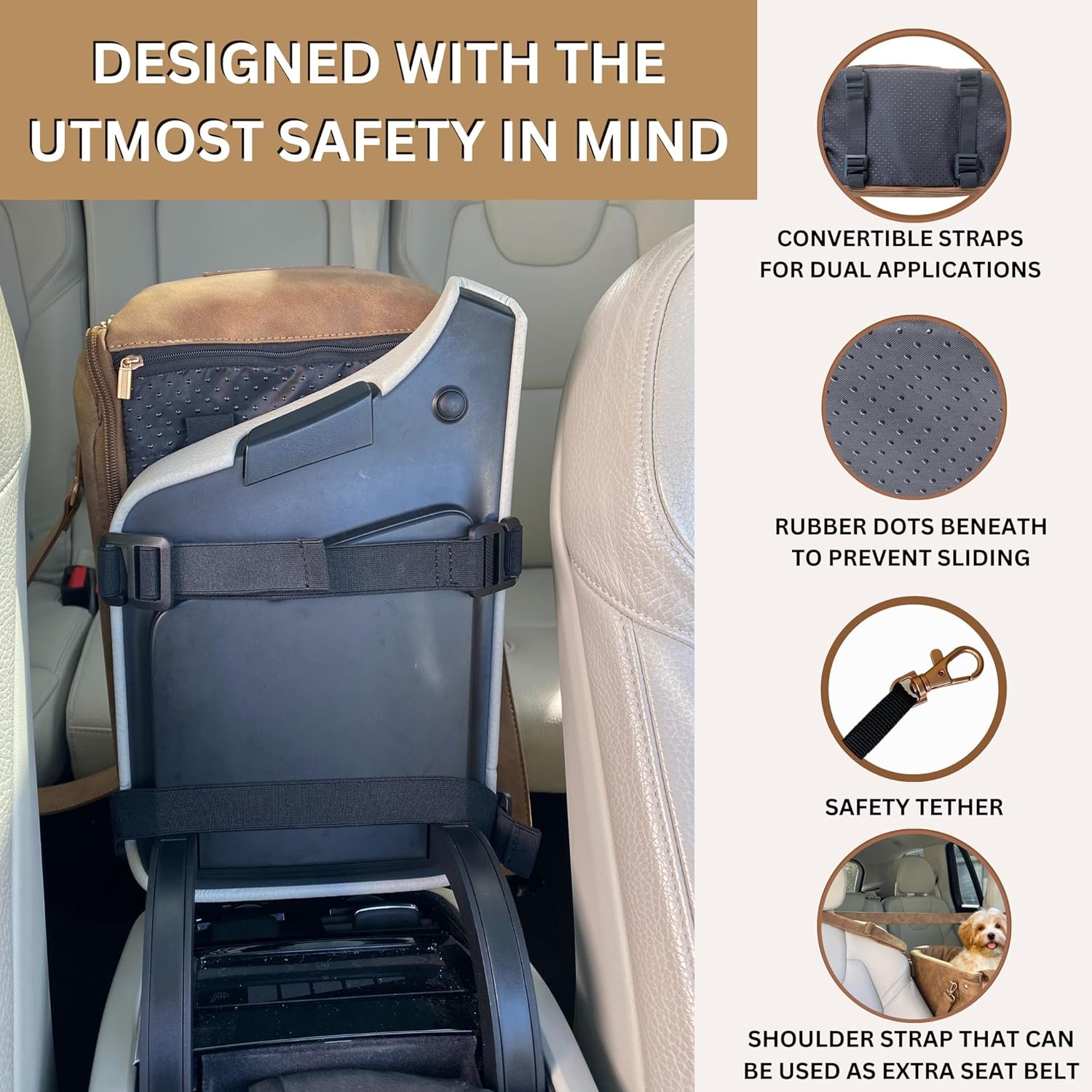 STYLISH DESIGN- Stylish design and premium quality make this dog car console seat the perfect accessory for pet owners who want to travel with their furry friends in style and comfort. The Cozy Cruiser can be converted into a pet carrier, making it easy to go from the car to appointments!