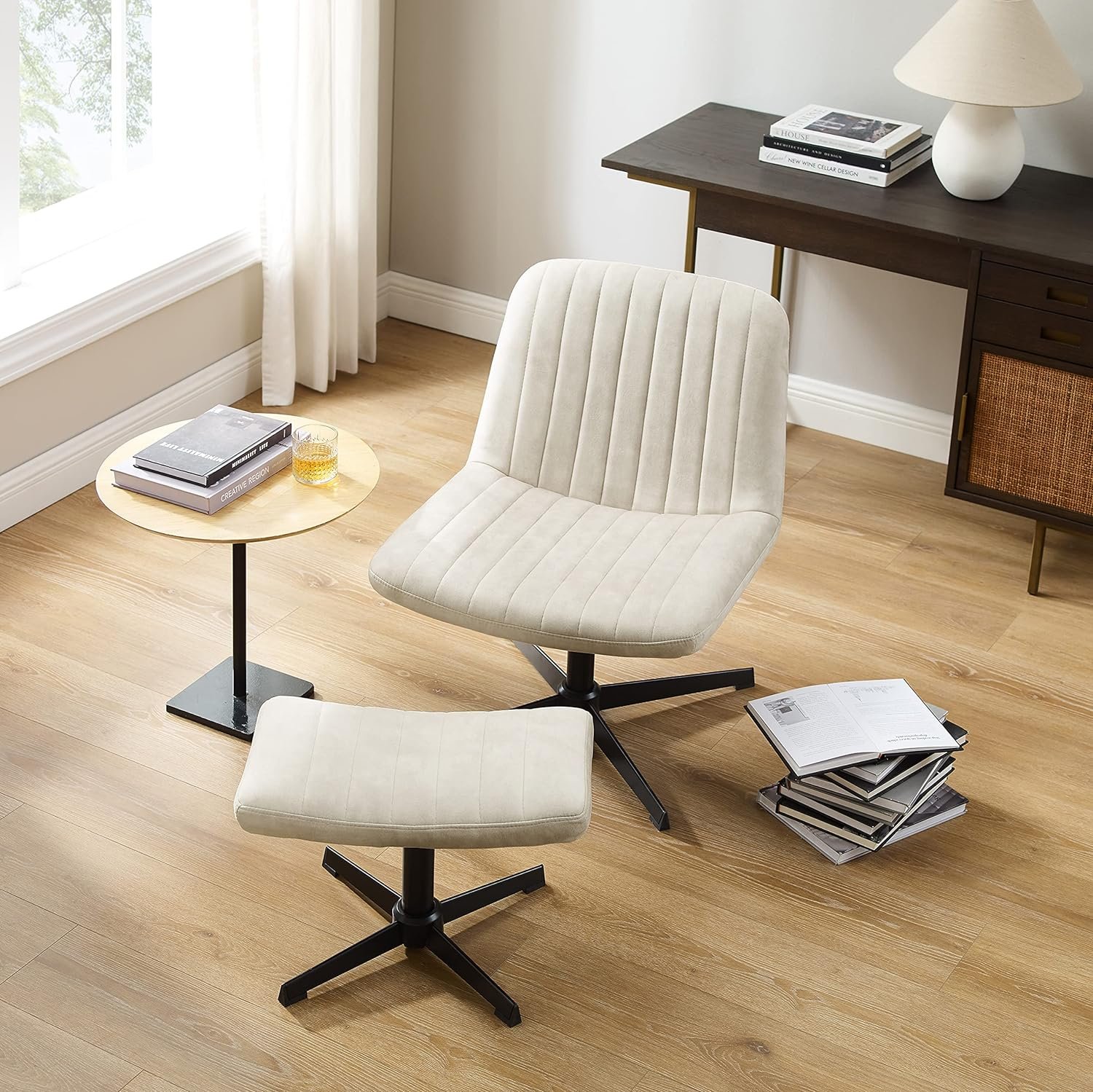 【Multi-purpose Chair】: The footrest chair is height-adjustable and swivels 360 degrees. Which can be used as a vanity chair, dressing chair, accent chair, side chair, etc.