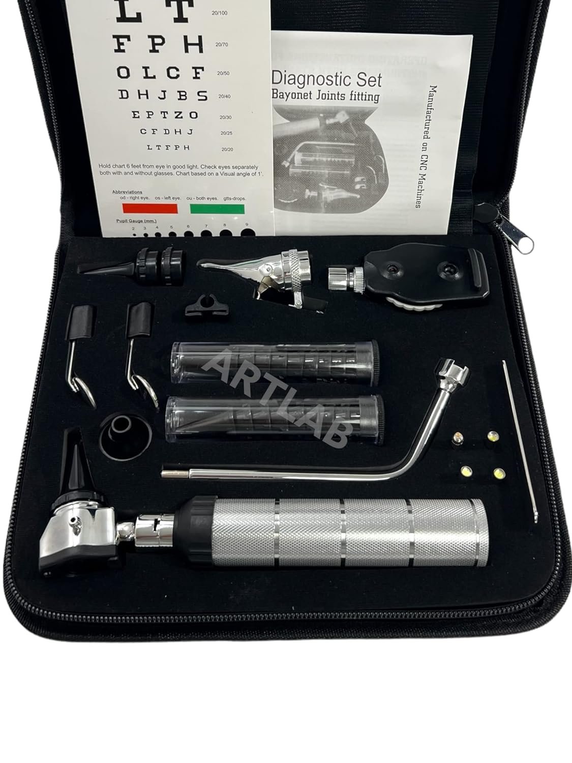 Artlab-Premium 3-In-1 Otoscoope Oph Diagnostic Set- Multi-Function Otoscope- Kit For Home ,Medical And Nursing Students-Sight Chart, Replacement Tips, Easy To Carry Case-Practice, Perfect, And Test Your Ent Diagnostic Skills With A Full-Function Scope Kit For Eye, Ear, Nose, And Throat.