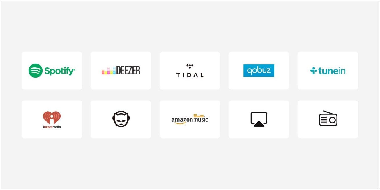 【Multiple Music Sources & Protocols】: Supports Spotify, Tune in, iHeartRadio, XIMALAYA, QQ Music, TIDAL, Napaster, Qobuz, QQFM etc. And airplay1, Qplay, DLNA, UPnP protocols. Also Other audio sources for local music, USB flash drive, NAS and line inputs.