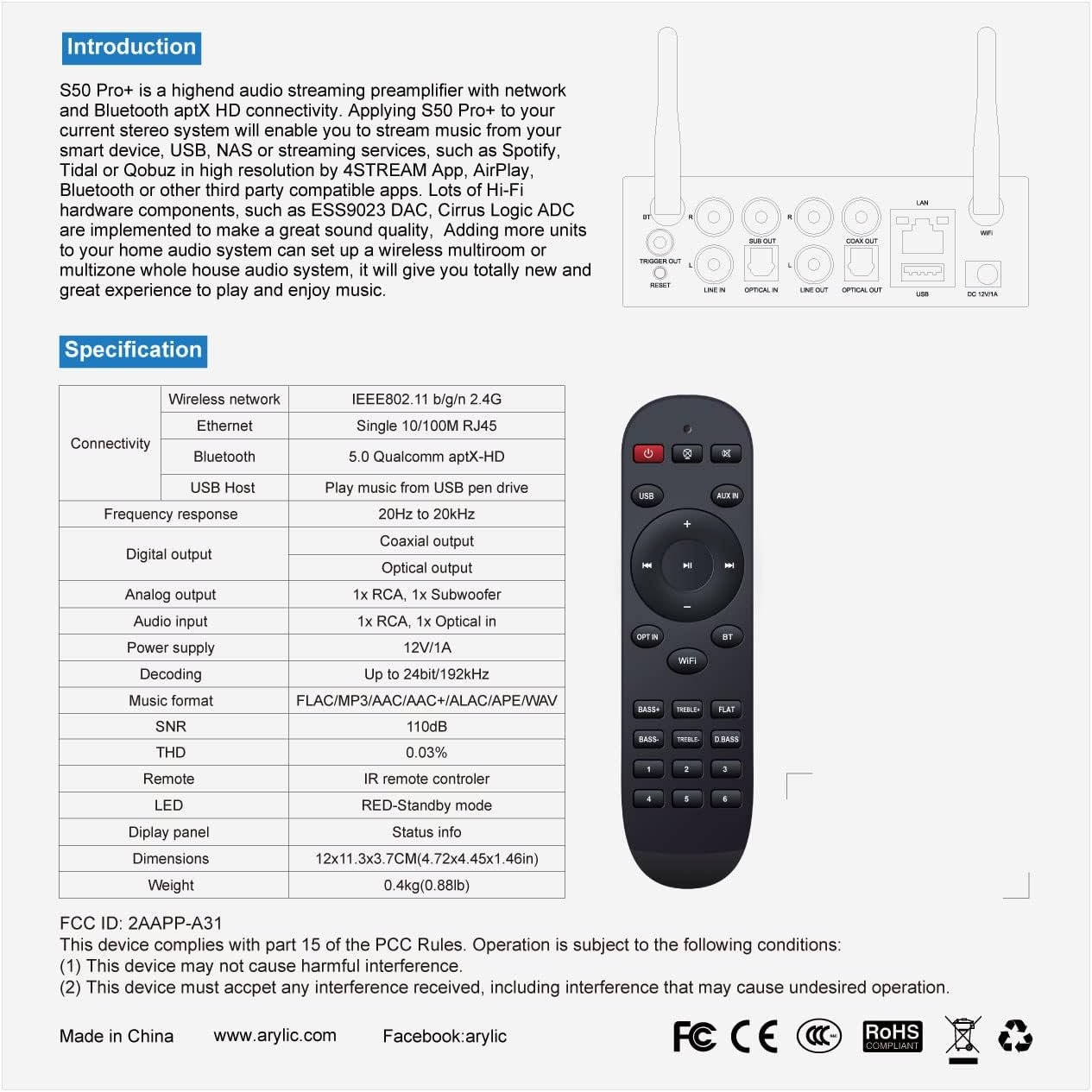 【Center Unit of Your Audio System】:S50 Pro+ designed with multiple input and output interfaces, like RCA analog input/output, optical input/output, subwoofer output, coax output and a 12V trigger output. Able to connect most of your audio gears.