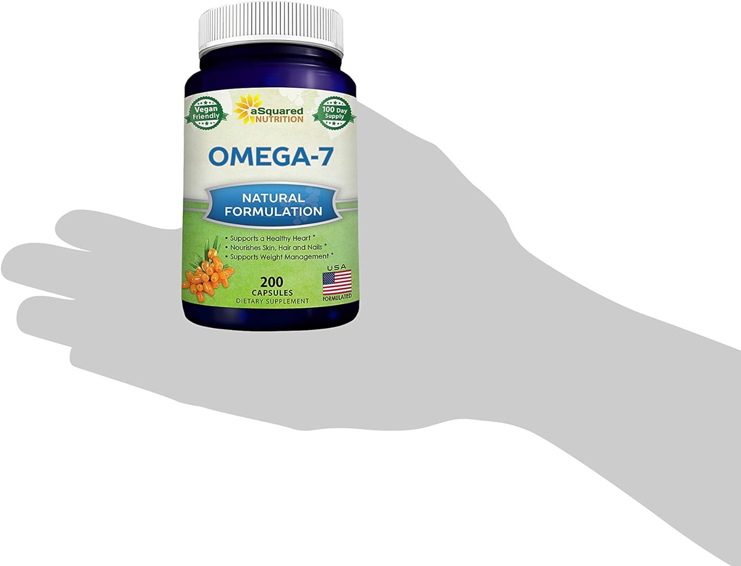 aSquared Nutrition Purified Omega 7 Fatty Acids-200 Capsules from Natural Sea Buckthorn, XL Vitamin Supplement,No Fish Burp,Vegan Omega-7 Palmitoleic Acid, Omega 3 6 9 for Complete Weight Loss Results
