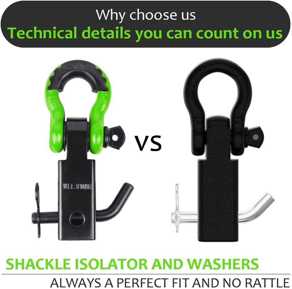 🔧 2″ Hitch Receivers with 3/4 D-ring Shackle: The Tow Hitch Receiver is made of carbon steel with a rated working load of 11,000 lbs and a breakpoint of 45,000 lbs. Black silicone isolators to prevent scratching when mounted. This shackle hitch receiver accessory is suitable for all towing applications.