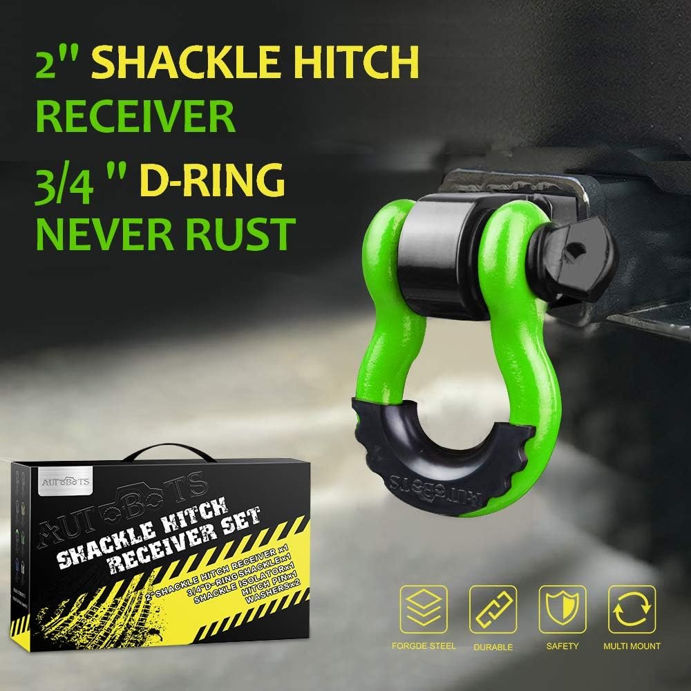 AUTOBOTS Tow Hitch Receiver 2″, 45,000 Lbs Break Strength Heavy Duty Receiver with 5/8″ Screw Pin, 3/4 Shackle, Towing Accessories for Vehicle Recovery Off-Road Green&Black