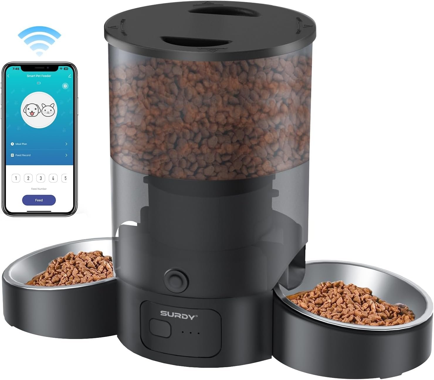 Dual-Side Balanced Feeding: The SURDY Dual Cat WIFI Automatic Feeder ensures even distribution of pet food on both sides, eliminating any uneven feeding. Its dual feeding system creates a peaceful dining atmosphere for your pets, eliminating food competition concerns.