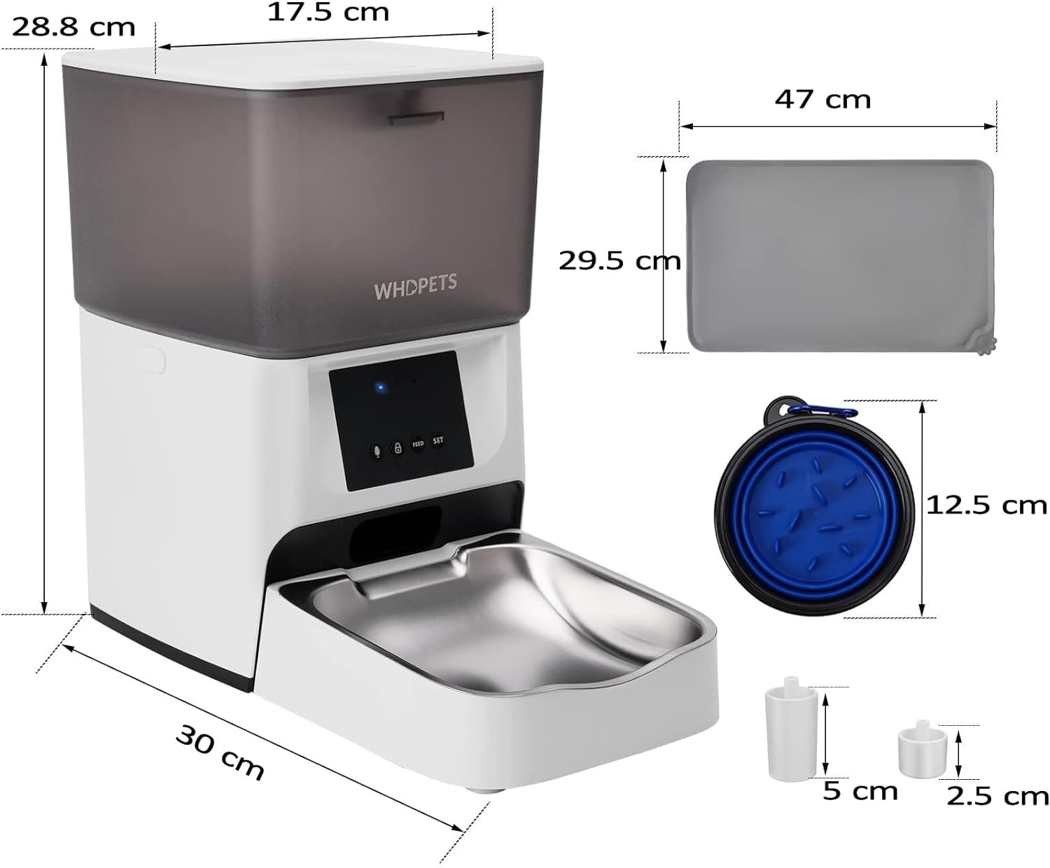 【3 ADJUSTABLE HEIGHT】WHDPETS automatic cat feeder comes with feeder raisers in 2 sizes (1 inch & 2 inches), which can raise the height of the bowl. Using an elevated auto cat feeder helps to reduce stress on joints and bones for your furry friend, it’s great for cats or dogs with arthritis or mobility issues.