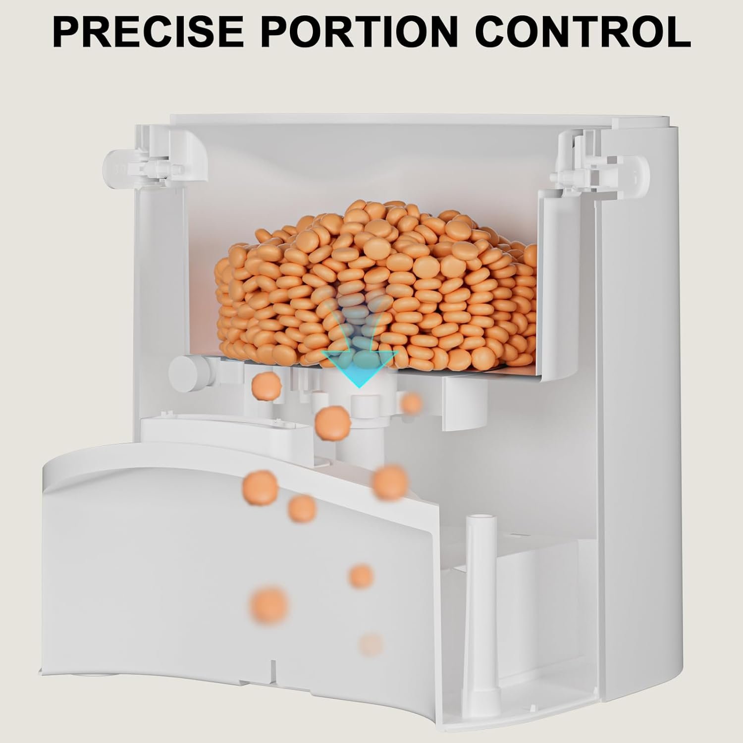 🐱【Two-way Audio & Personalized Meal Call】built-in advanced microphone and speaker so you can interact with your samll pet in real-time, and delight in the experience of remotely interacting with your pets that most cat automatic feeder with app don’t offer. You can also record a personalized voice message within 10S, it will be played automatically while dispensing food to remind your pets that it’s mealtime. When there is a new recording, the old one will be deleted. / Easily check the food level through the transparent window and add food in time.