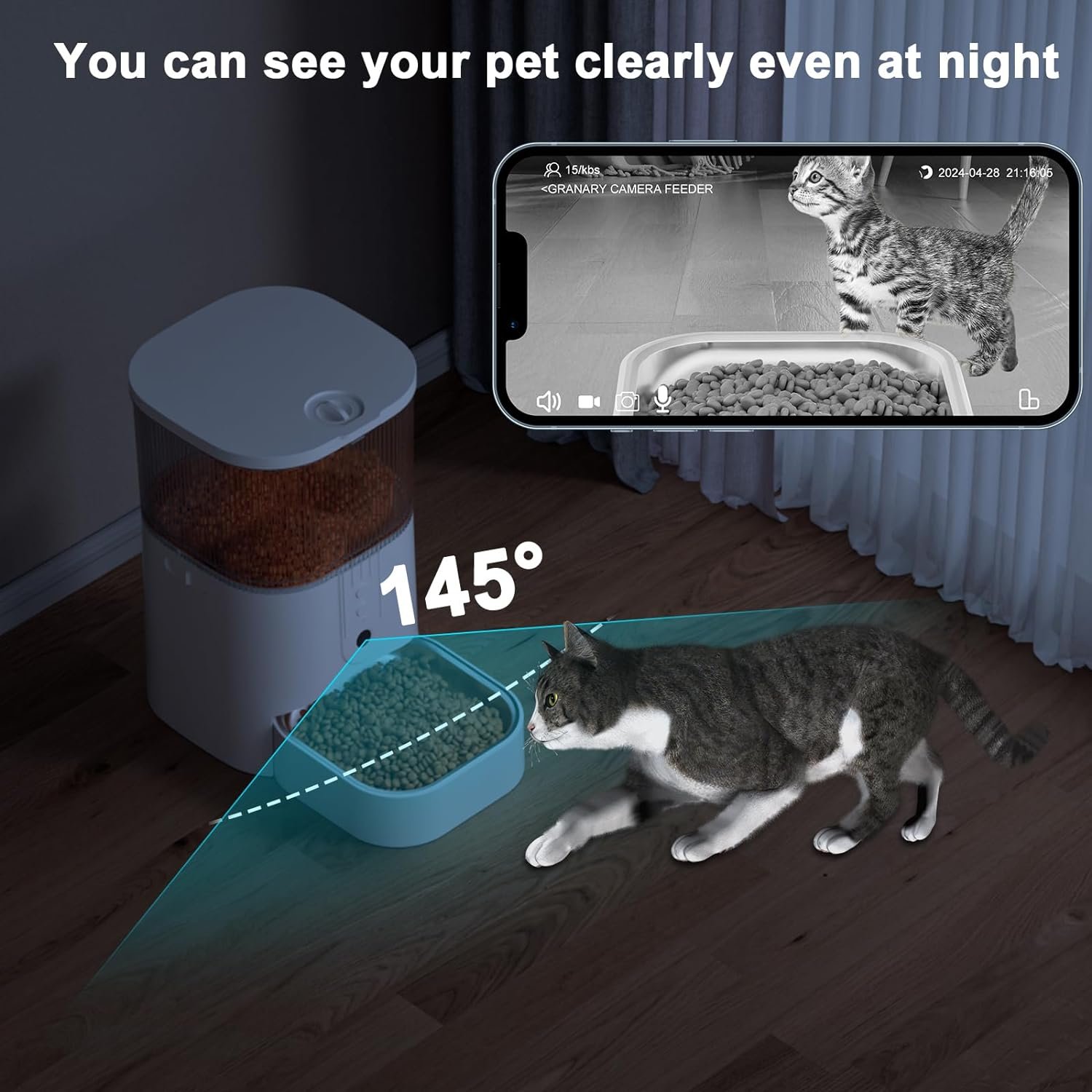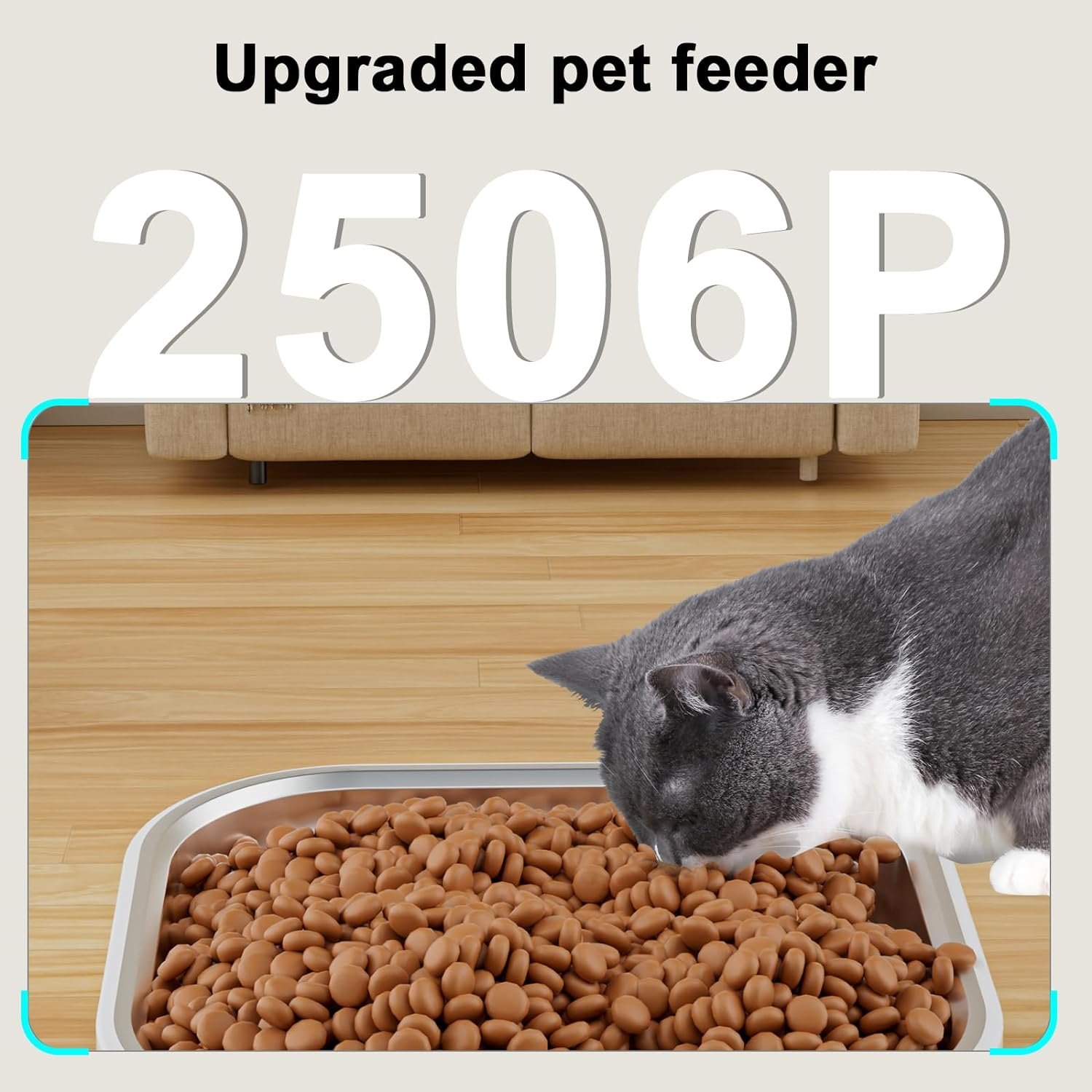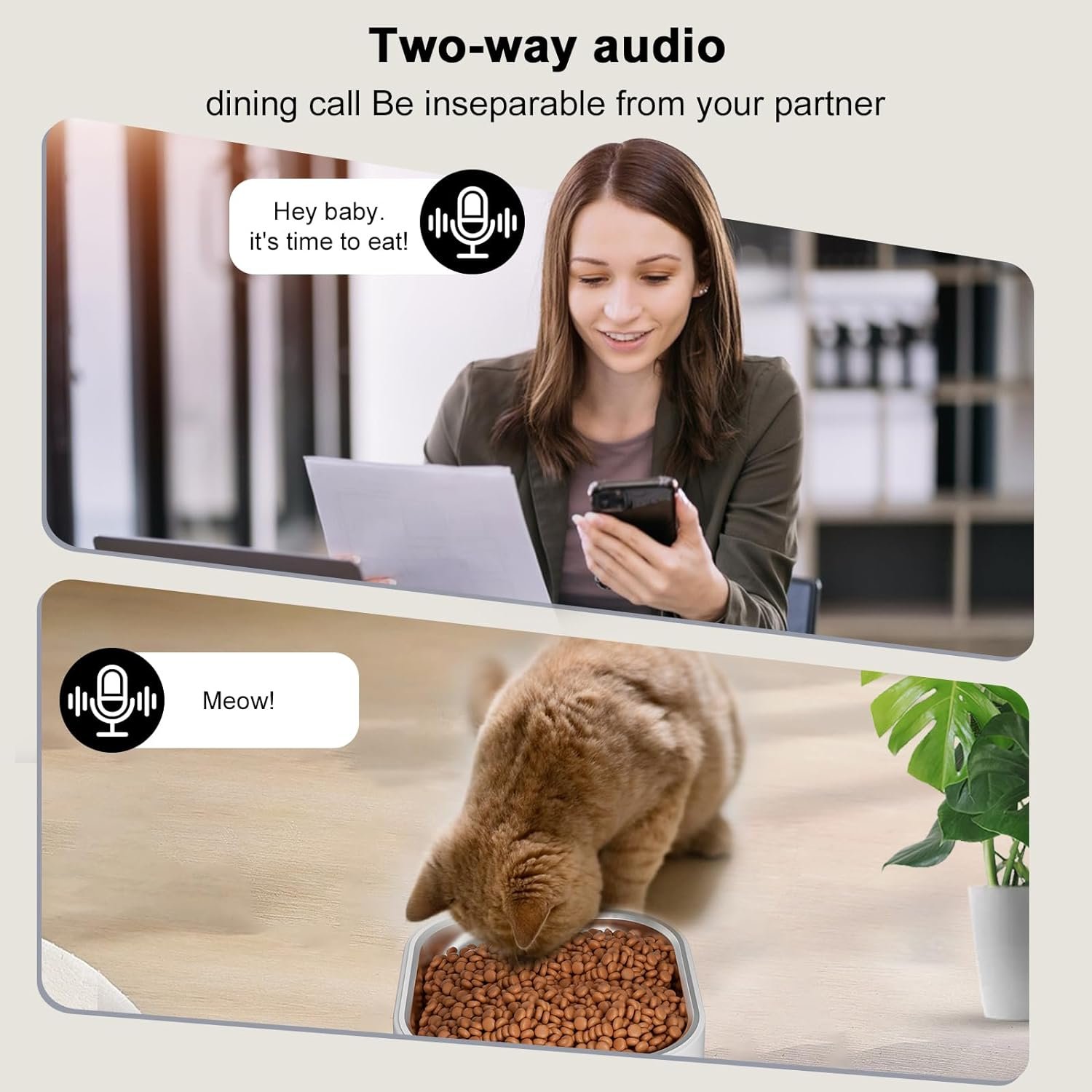 🐱【2000P HD Camera】 smart cat feeder features an HD camera with 400W/2000P high resolution and wide viewing angle, pet feeder with camera allows you to see, hear how your beloved pet is eating when you’re on the go.