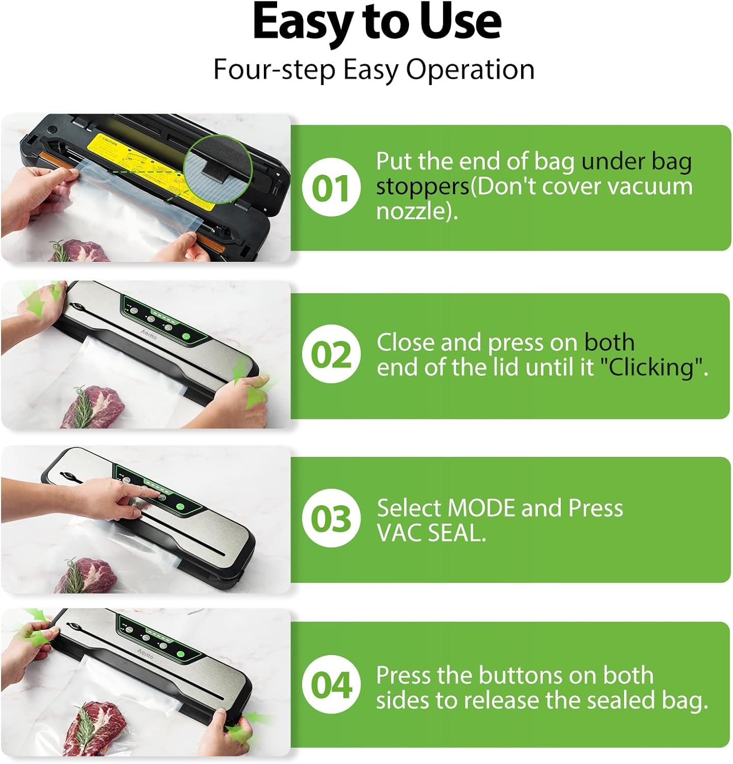 Superior Quality – Aeitto vacuum sealer are tested or inspected as many as 500 times throughout the manufacturing process, ensuring a more stable and efficient product for customers.