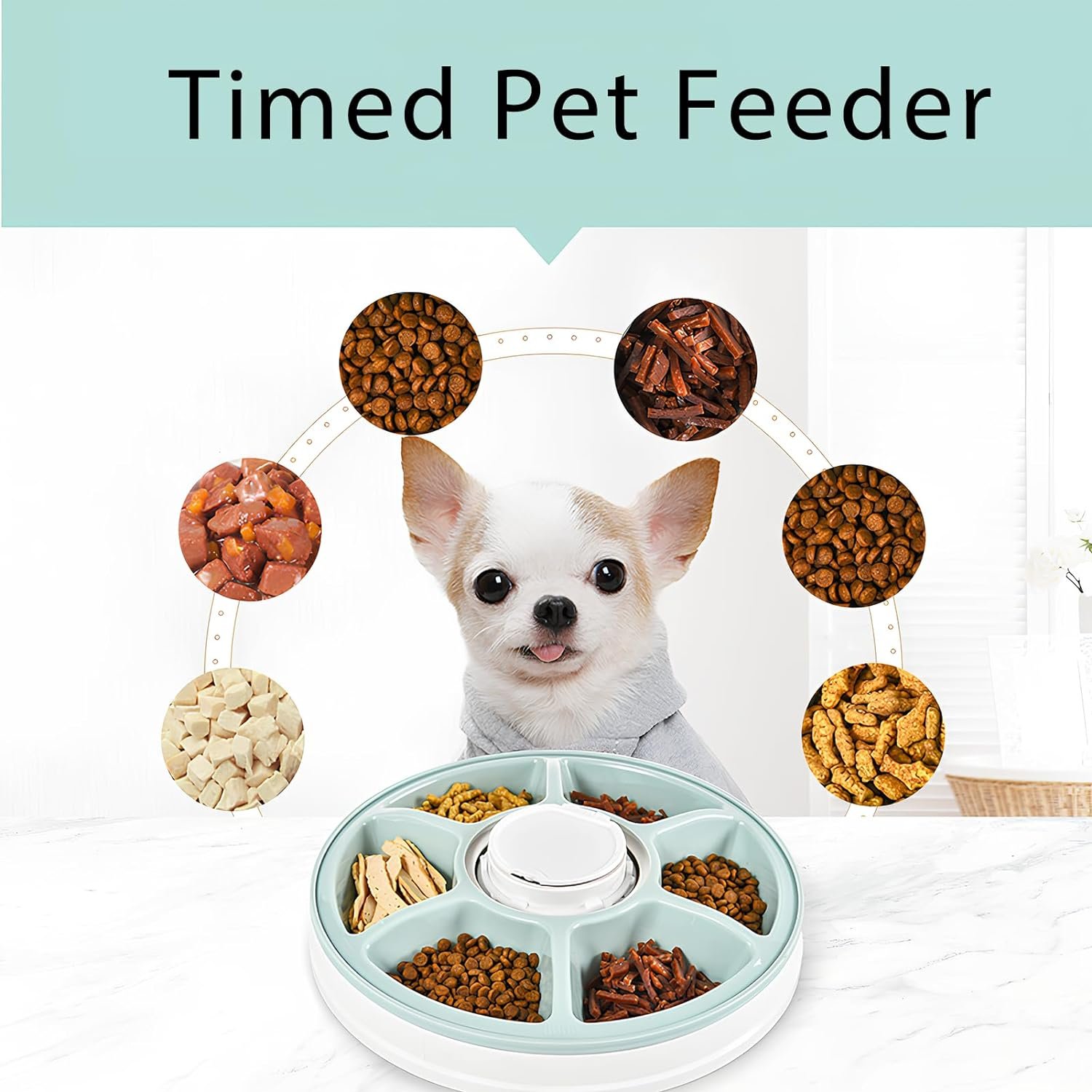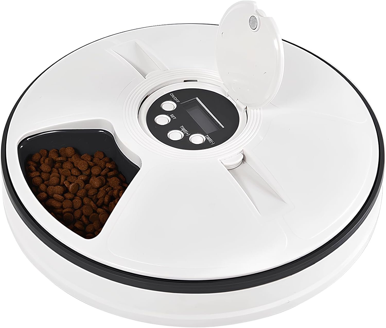 【Precise Portion Control】With a built-in timer, this auto pet feeder features 6 compartments for use with dry, moist, and wet food or even treats and medicines. Hensis automatic cat feeder delivers precise portions and dispenses small amounts of food at certain intervals. Ideal for cats, small dogs, dieting pets, aging pets, or other pets that require more frequent feeding or with special needs.