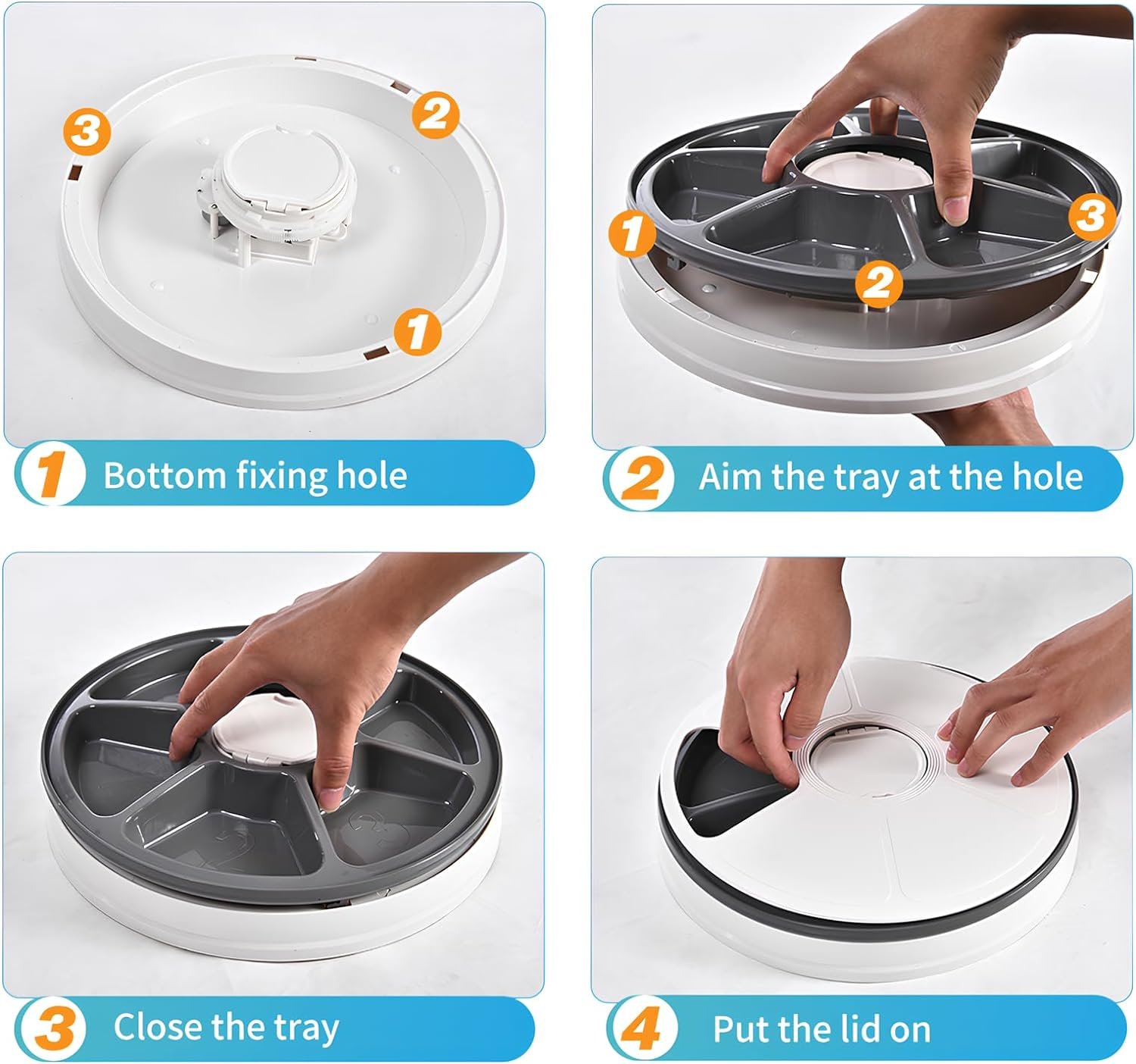 【Easy To Clean】 Both the cover and food bowl are removable and top-shelf dishwasher safe. Thanks to the sealed tray design, you have no need to worry about short circuits if the water drops inside. The sealed lid and dispenser prevent pets from prying paws to turn the tray and steal food to keep its hygiene and safety.