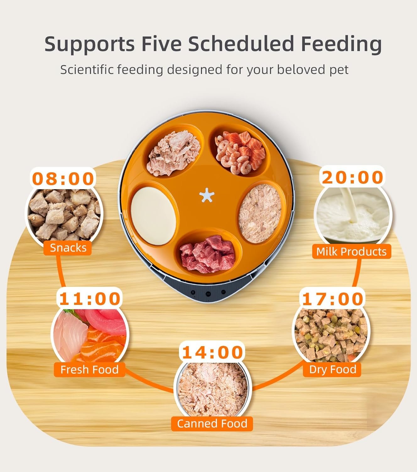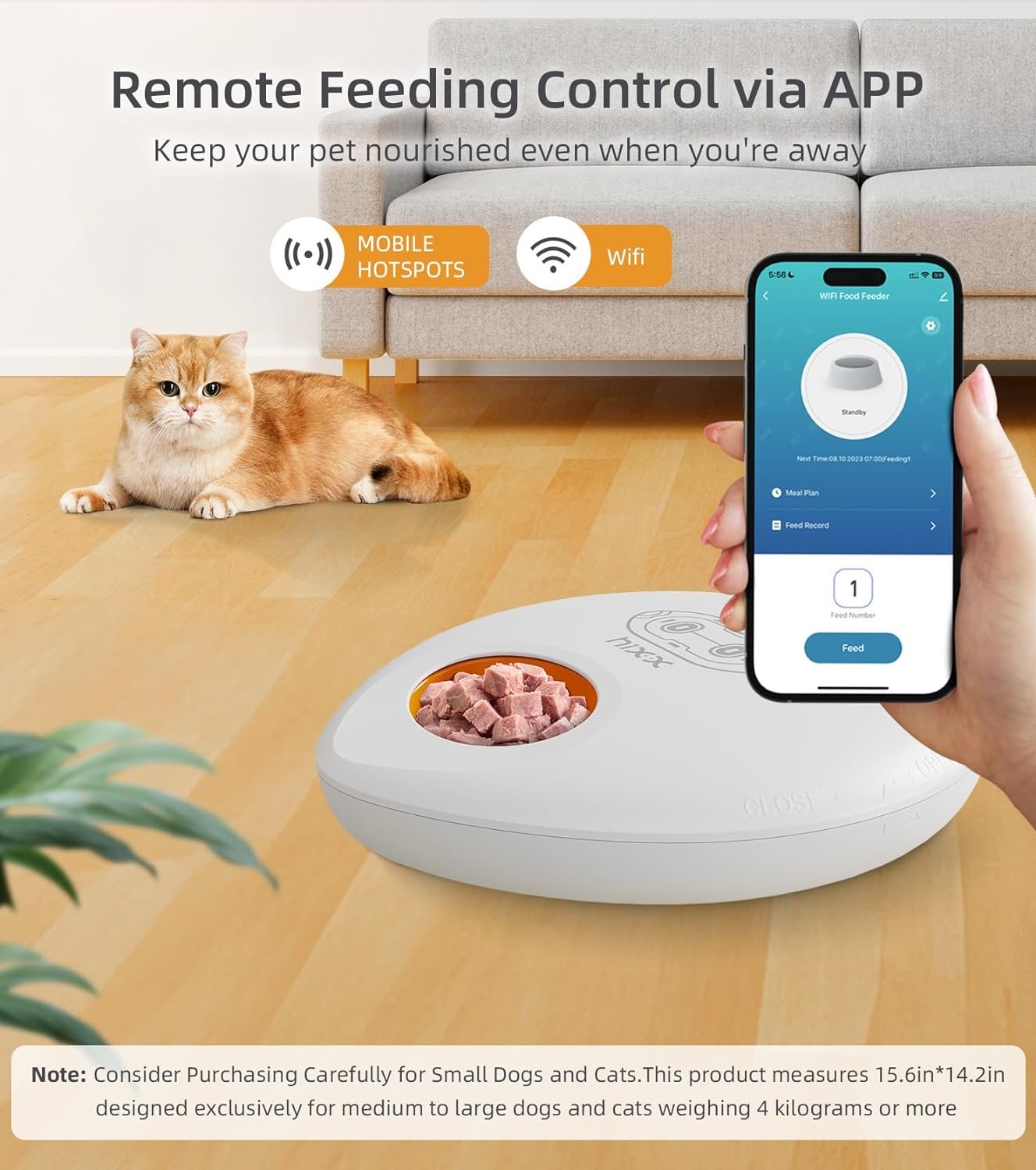 【Revolutionize Your Pet’s Feeding Experience】Introducing the HIXX WiFi-Enabled Automatic Wet Food Pet Feeder, an unparalleled solution that streamlines your pet’s feeding routine with cutting-edge technology. With the convenience of our intuitive APP control, you can pre-program up to 4 timed meals, offering a total of 5 fresh servings throughout the day – even when away from home. (Please note: The feeder operates on 2.4Ghz WiFi networks only.)