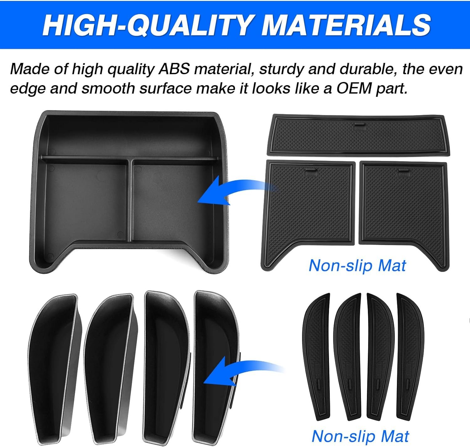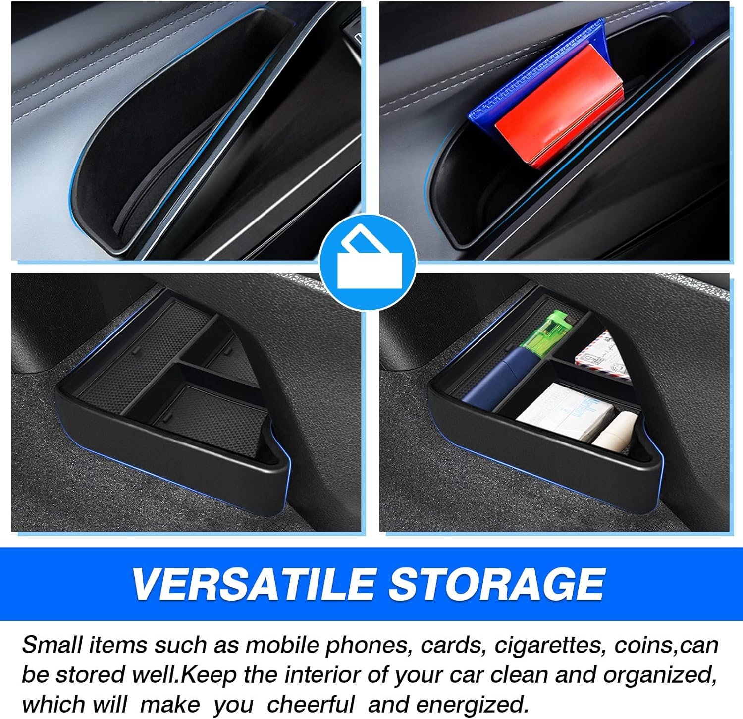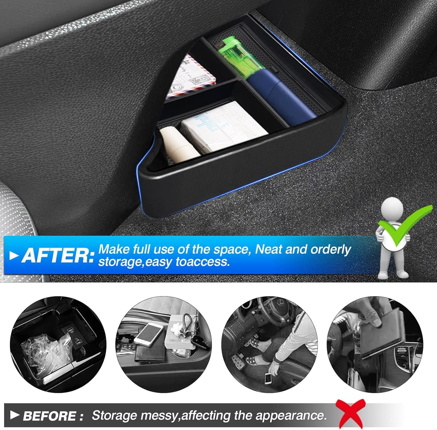 🚗Well-made Organizer—It is made of a durable and sturdy ABS shell. The even edge and smooth surface give the door side storage box an OEM part appearance. Additionally, the provided tasteless and non-toxic rubber liner effectively prevents items from sliding and rattling.