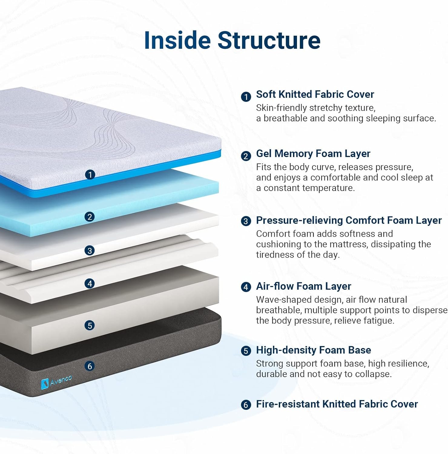 1. Avenco queen mattress is a four-layer design, ergonomically designed to conform to your curves, thereby reducing your pressure.