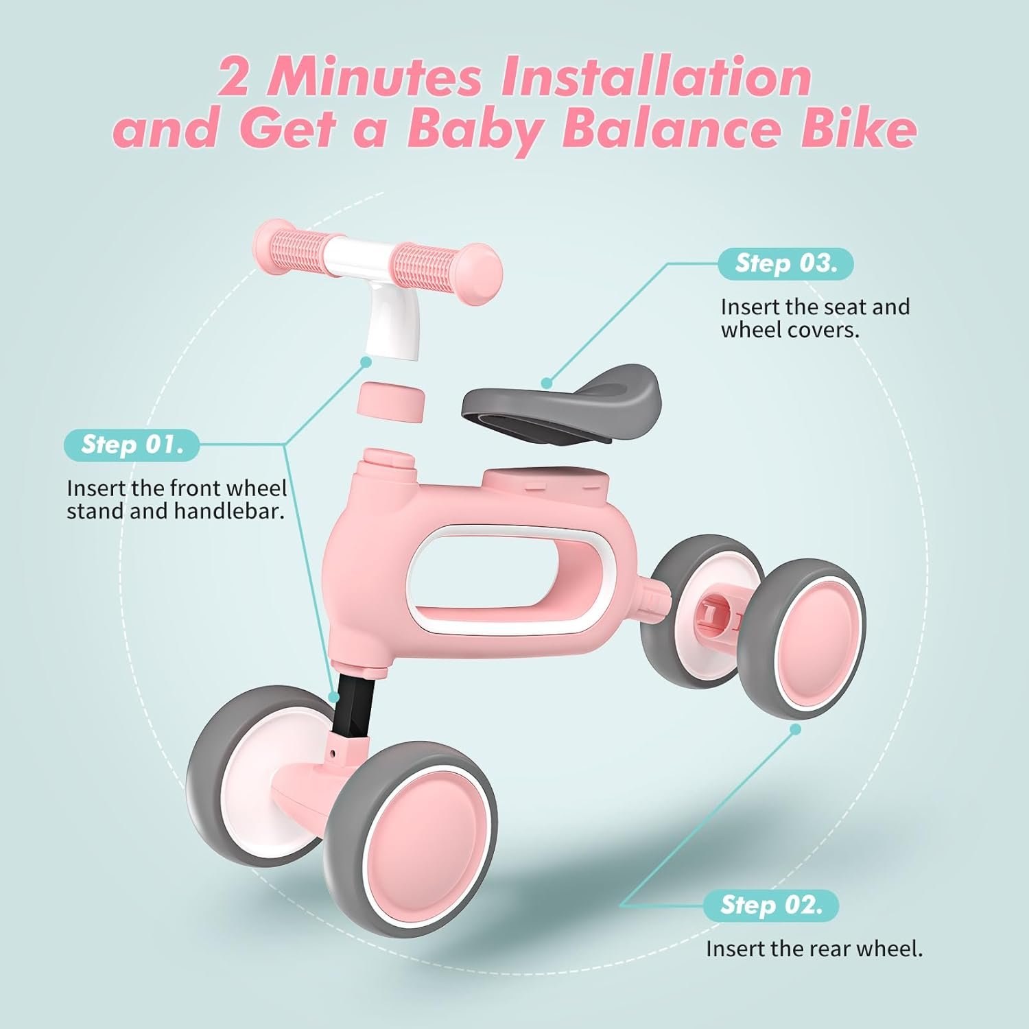 ใ2 Minutes Installation and Get a Baby Balance BikeใNot like others 1 year old bike that need many steps and even screws to install, this 1 year old bike just need 2 minutes and your baby can get a lovely rabbit bike. Baby loves walking and this baby bike will be a nice gift for your cute baby.