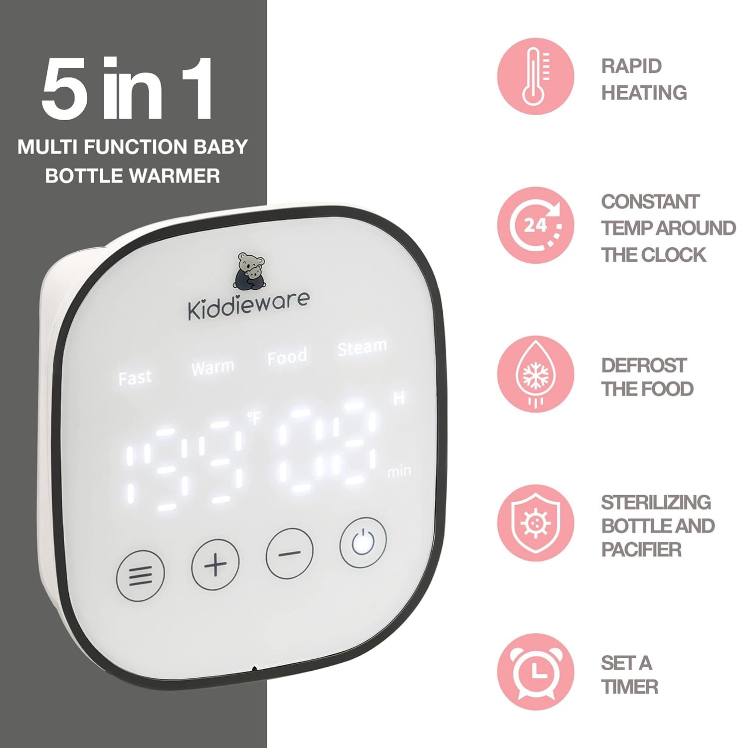 5-in-1 EASY FUNCTIONS: Quickly Warm Breastmilk, Baby Formula – Food Heating – 24-Hour Constant Warming – Defrost – Steaming with this Easy to use Plug-in Bottle Warmer for Breastmilk.