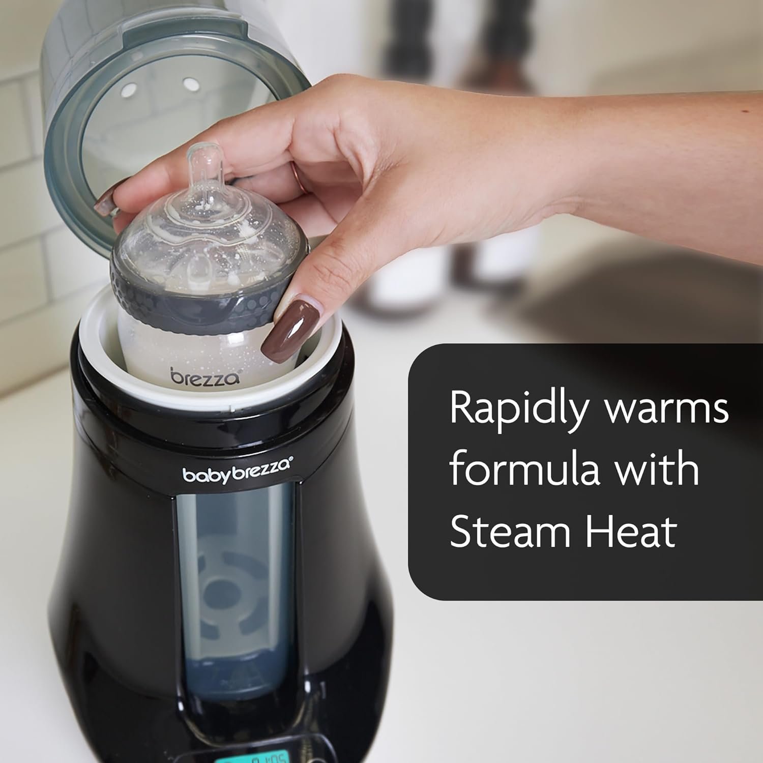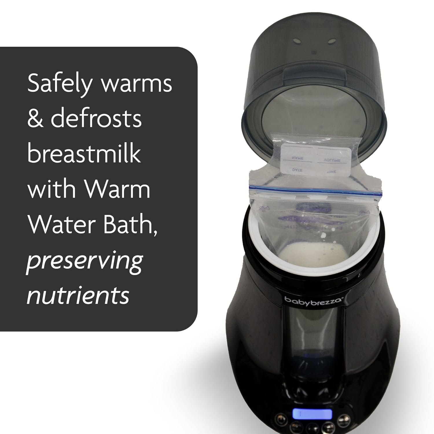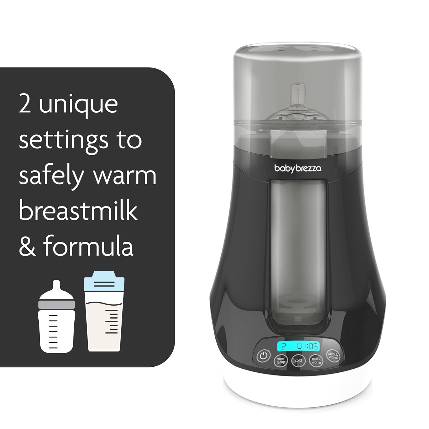 The Baby Brezza Bottle + Breastmilk Warmer warms formula, breastmilk and baby food jars safely, evenly and quickly. The Safe + Smart Baby Bottle Warmer is the only warmer with 2 settings to ensure formula or breastmilk bottles are safely heated to the right temperature. Steady Warm Mode uses a warm water bath to safely warm or defrost breastmilk or baby food to preserve its nutrients (note: traditional bottle warmers warm breastmilk with steam heat, which can destroy breastmilk proteins). Quick Warm Mode uses safe, steam heat to rapidly warm for formula and baby food. The Bottle + Breastmilk Warmer includes a warming basket that fits most bottle brands/types, most storage bags (frozen or thawed) and plastic/glass food jars and it includes an auto-shut-off to prevent overheating.