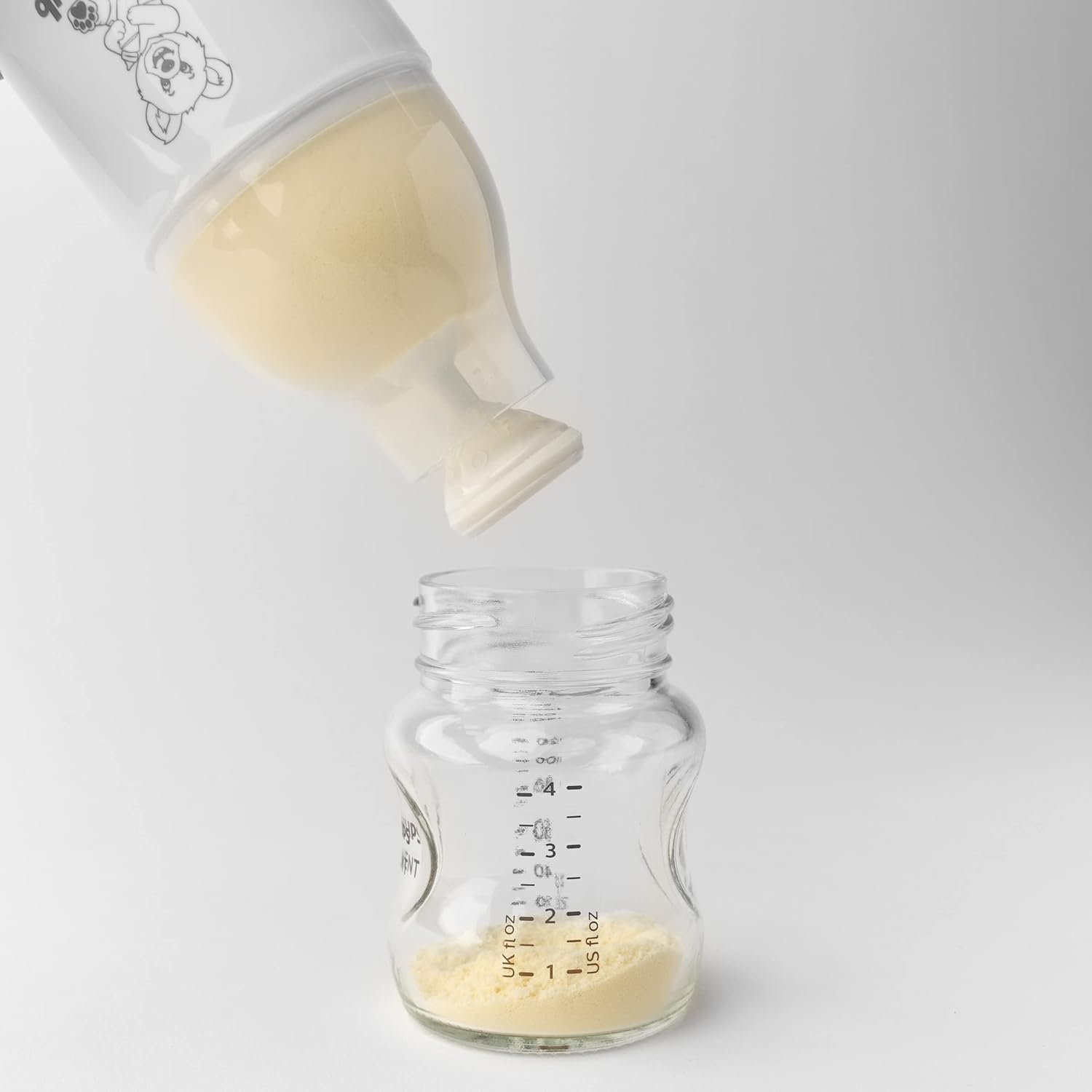 Narrow dispenser tip allows for precise release of formula powder, avoiding powder spills