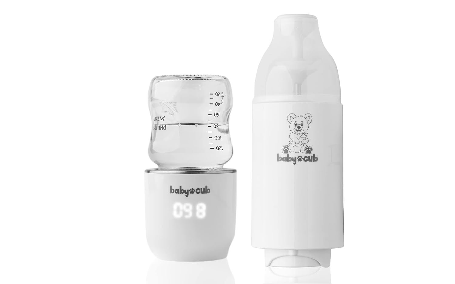 The Baby Cub Portable Bottle Warmer set provides a full solution for any family either at home or on the go. A small compact design allows you store both warmer and powder dispenser comfortably. When your baby wants to drink milk in the middle of the night or while you’re out and about, just pick up the Baby Cub Bottle Warmer, attach your bottle, and switch it on. Your baby will get instant warm milk and much needed relief from hunger. Out of the box is compatible with Phillips AVENT, Chicco, and Lansinoh brand bottles, along with other standard wide neck bottles. Adapters for additional bottle brands sold separately. Packaging includes bottle warmer, formula travel dispenser, travel bag, and USB charge cable. Product does not include a baby bottle.