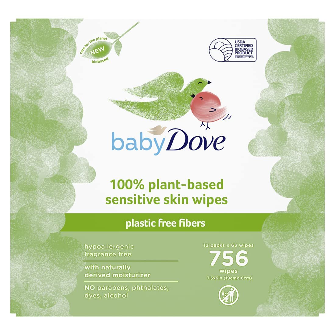 Discover care that goes further. Baby Dove Sensitive Skin Wipes with 100% Plant-Based Fibers help care for your baby’s skin – and the planet. Discover Baby Dove Sensitive Skin Wipes. Our sensitive baby wipes provide you the Baby Dove care you know and trust, with kinder-to-planet fibers and recyclable packaging. Plus, our Baby Dove wipes are USDA certified bio-based, so you can use with confidence for your family. Did you know that the fabric of ordinary baby wipes is up to 40-80% plastic? Baby Dove is different. Our baby wipes are plastic free, and made with soft, 100% plant-based fibers. The plastic saved by buying our wipes is equivalent to 8 plastic shopping bags. Our sustainable baby wipes will help you create a bathtime routine that’s kinder to the planet, without compromising on care for your little one. Baby Dove’s mild, skin-loving plastic-free wipes have a hypoallergenic, fragrance-free formula. Baby Dove wipes are crafted with no parabens, phthalates, dyes, or alcohol, so they are even suitable for newborns. They are also dermatologist and pediatrician-tested, so you can trust they’ll cleanse sensitive baby skin gently. Plus, these sustainable wipes are made with naturally derived moisturizers to help leave your baby’s skin beautifully soft, smooth and ready for cuddles.