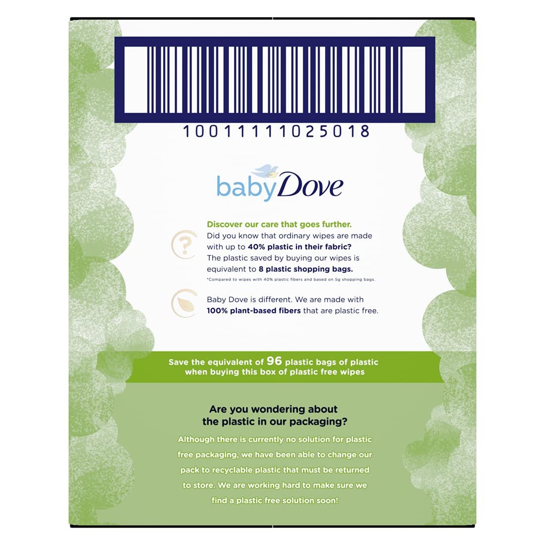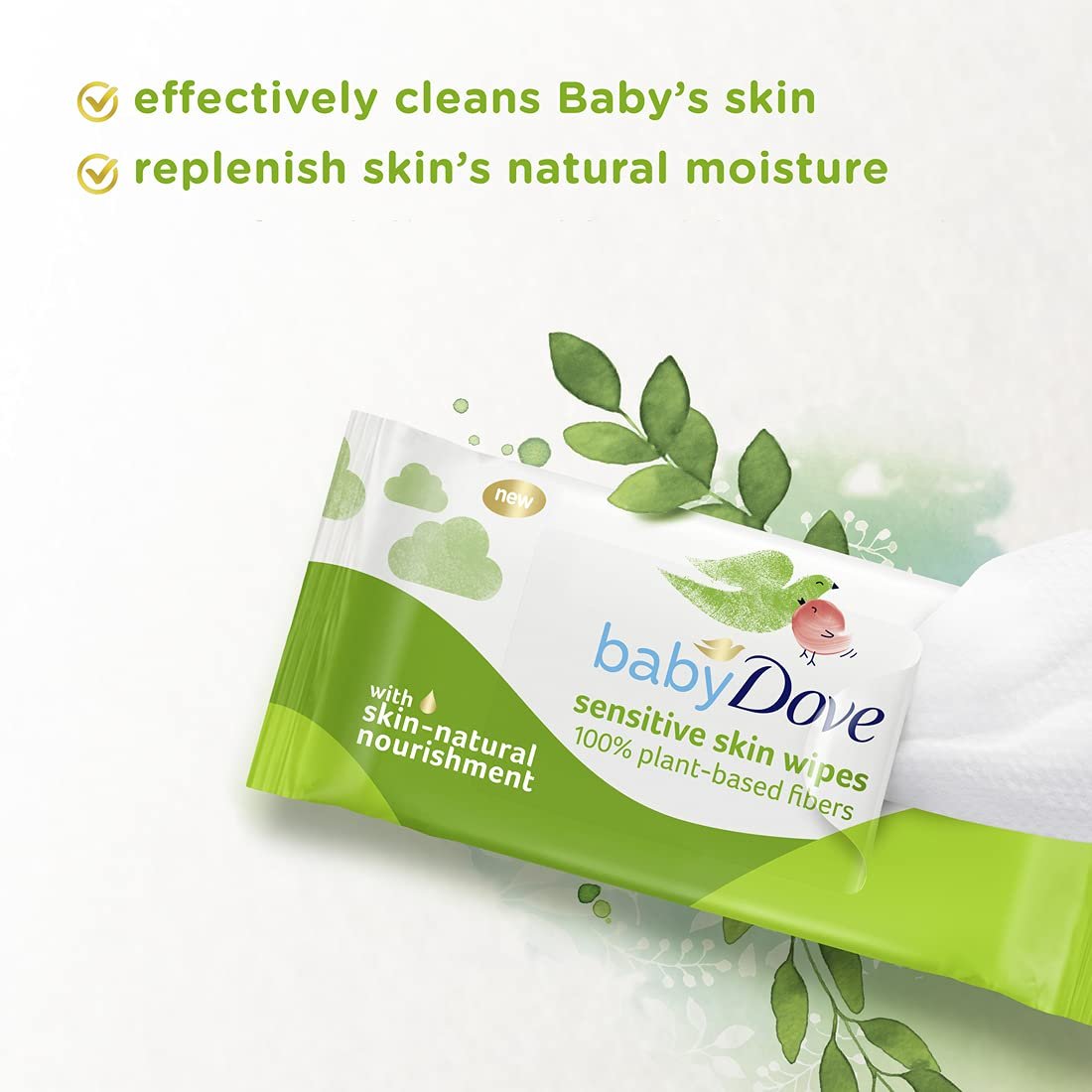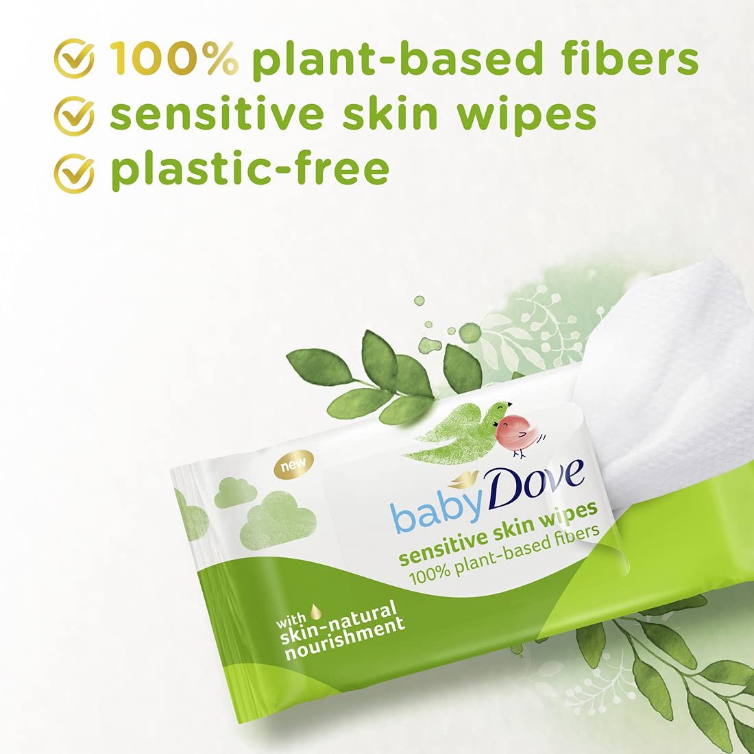 Our Baby Dove sensitive skin wipes are made with 100% plant-based, plastic free fibers