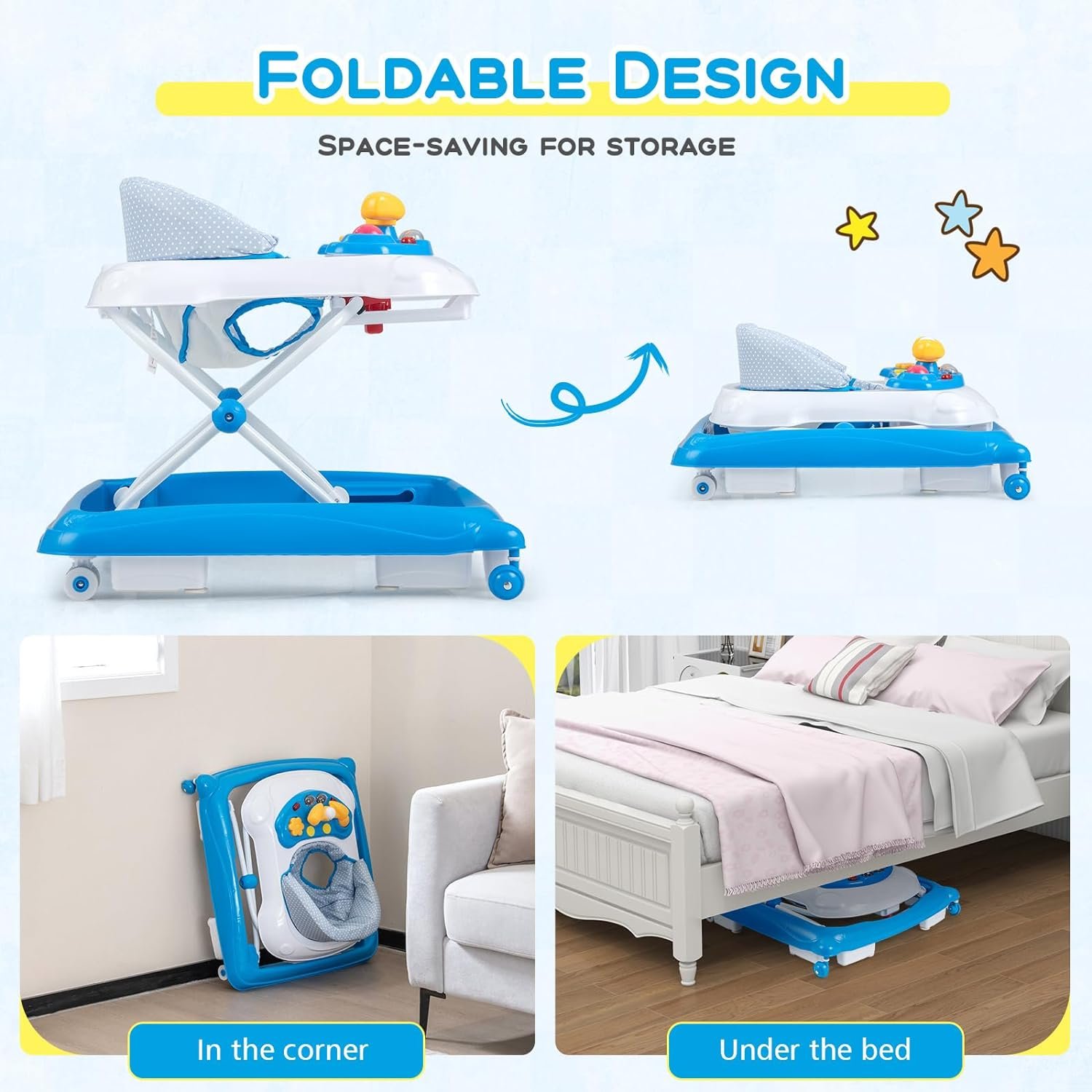 Make your baby’s journey to walking an enjoyable adventure with the foldable baby walker.