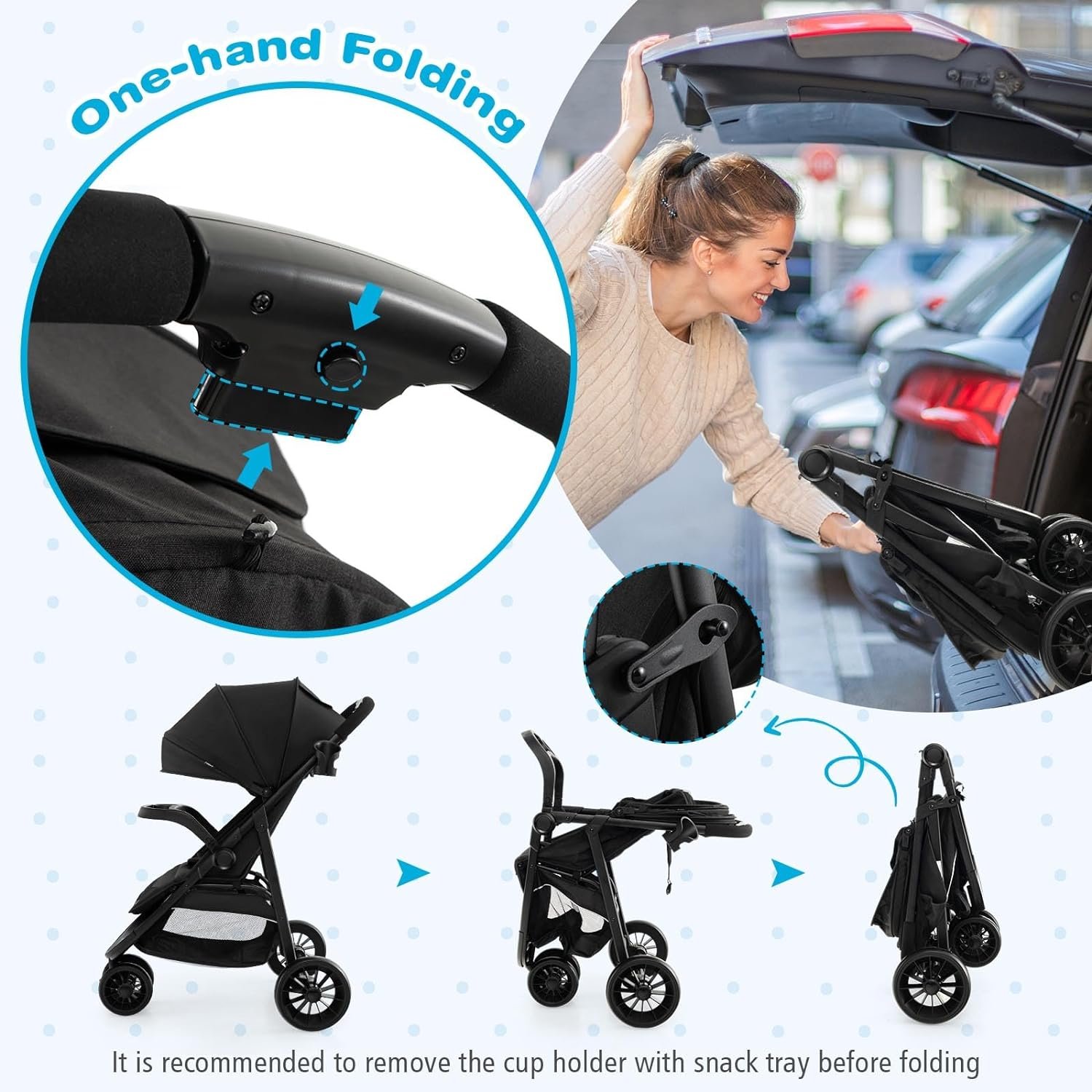 Make travel and everyday outings more convenient with compact fold and light weight.