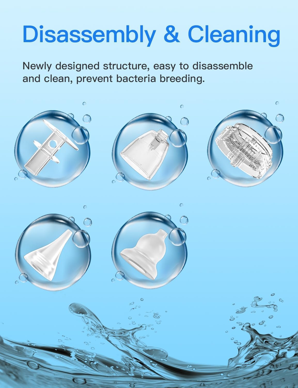 Durability Tips: The inside of the machine is not waterproof. When cleaning, just take out the storage box and silicone suction head for cleaning. Be careful of water intrusion. Please clean it in time after use to avoid nasal mucus being sucked into the machine. The battery is easily damaged if not used for a long time. It is recommended to start it regularly to extend the service life of the nasal aspirator.