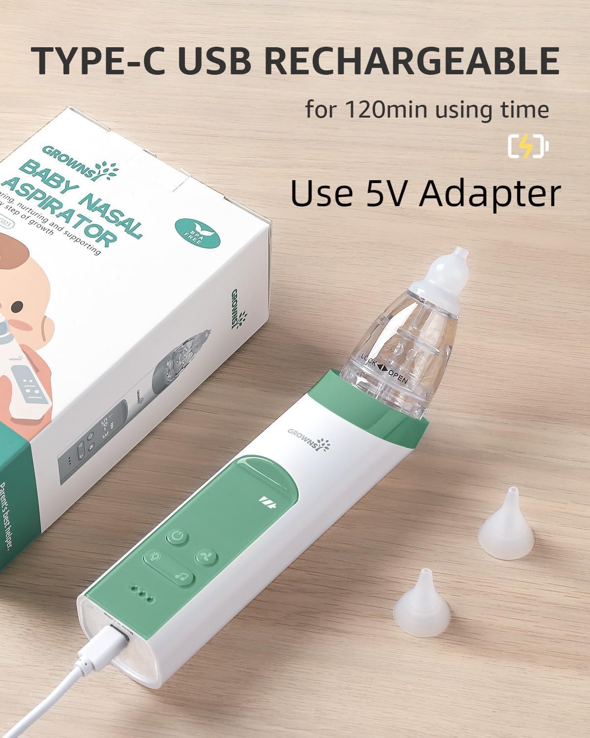 USB RECHARGEABLE: The rechargeable baby nose suction can be used for 30 days after being fully charged. This lightweight baby nose cleaner comes with a storage case, it allows you to pack the aspirator and tips neatly or take it on any trip.