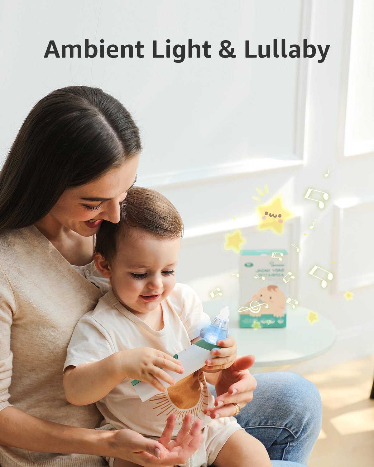 INNOVATIVE DESIGN: We especially adopted light and music soothing function on the electric booger sucker, and with lower noise, which will make your baby enjoy this nose cleaning and make the cleaning progress easier and quicker.