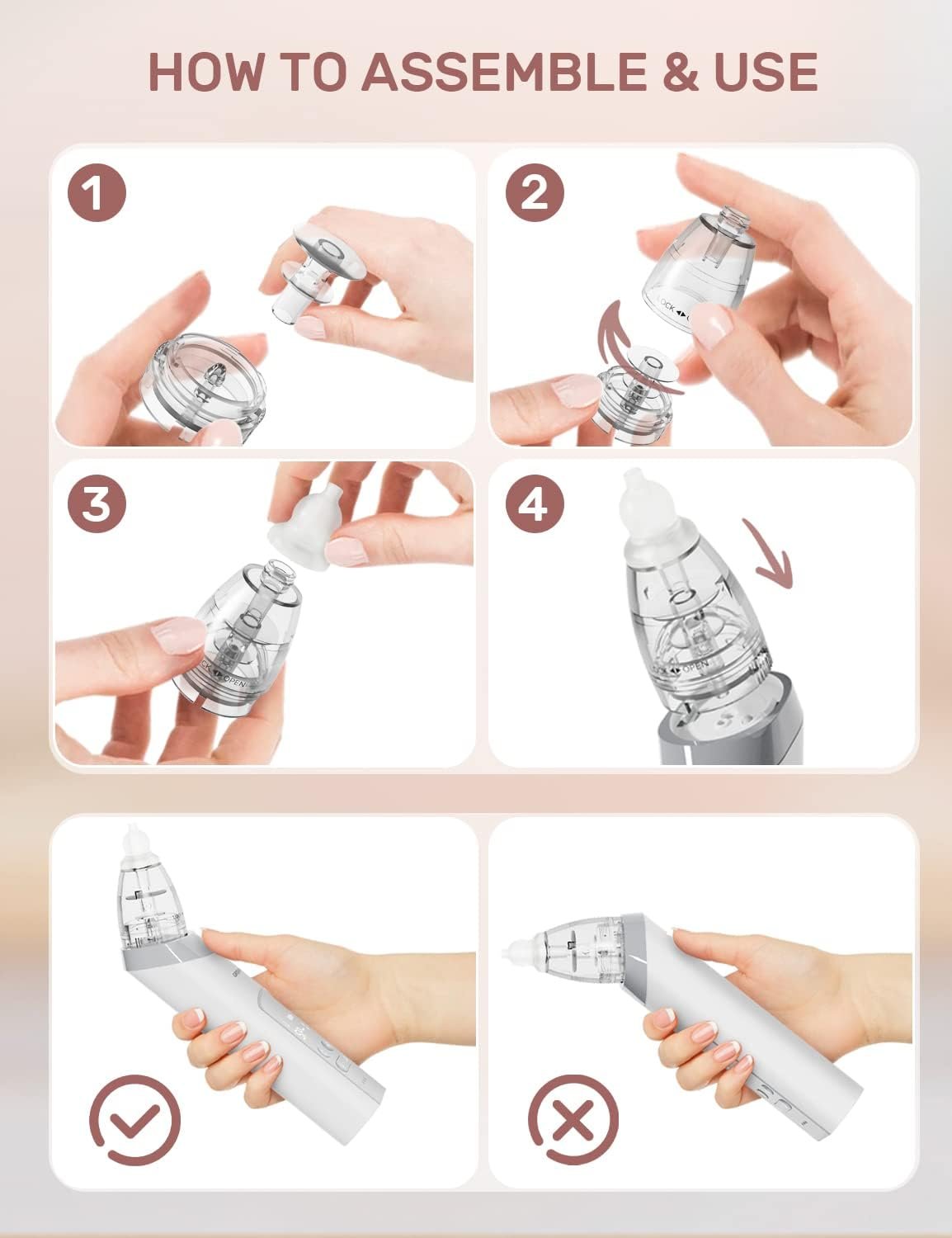 SIMPLE TO USE AND CLEAN: The ergonomic shape and LCD display make the baby aspirator easy to use. The parts of the baby nose suction are transparent and removable, it’s easily cleaned by rinsing in warm soapy water.