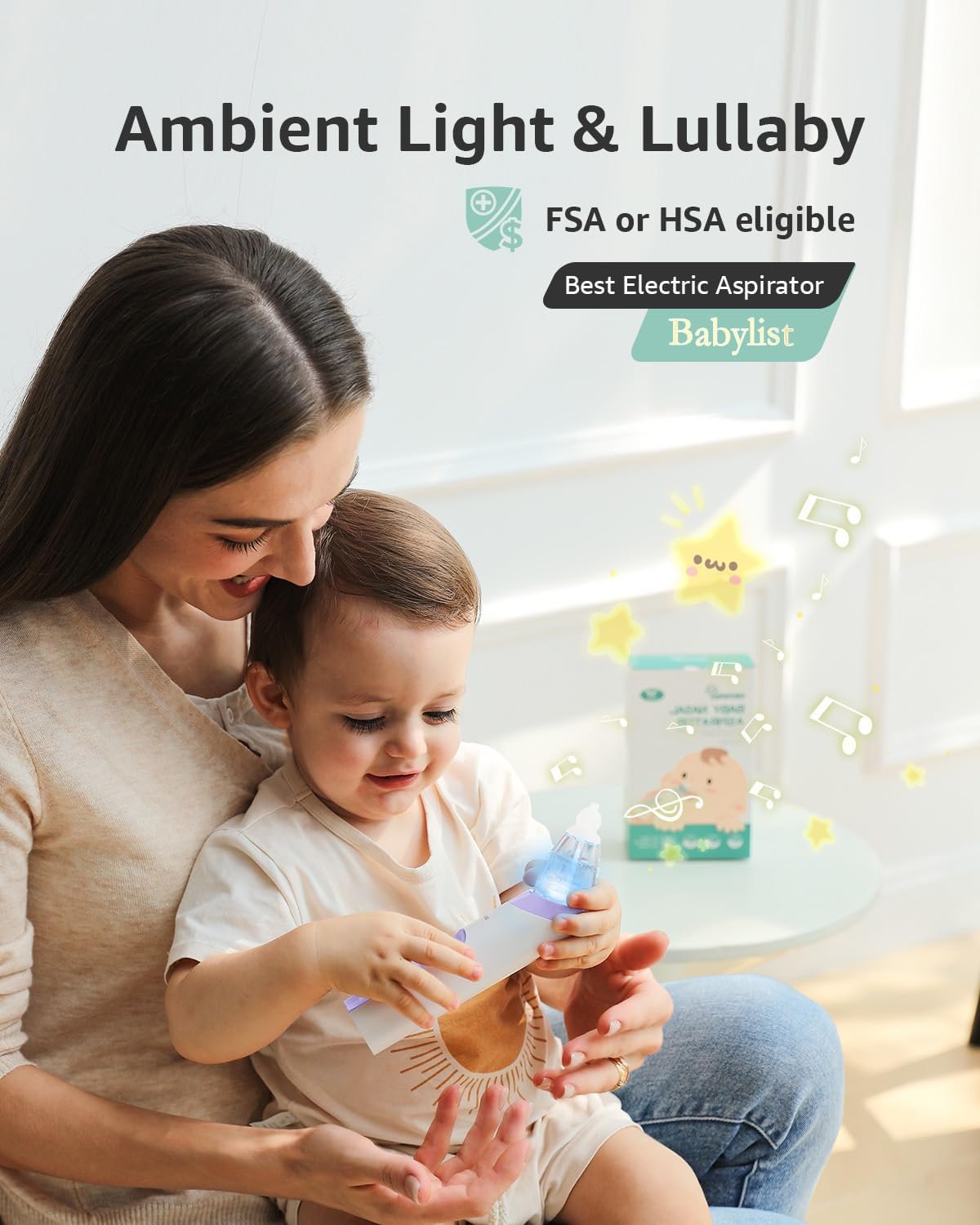 INNOVATIVE DESIGN: We especially adopted light and music soothing function on the electric booger sucker, and with lower noise, which will make your baby enjoy this nose cleaning and make the cleaning progress easier and quicker.