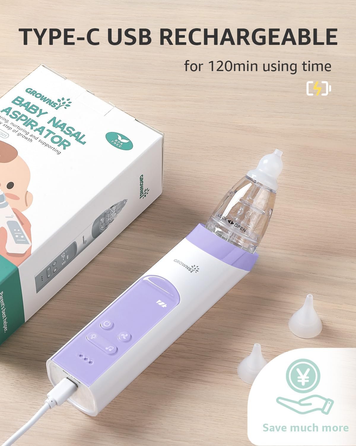 USB RECHARGEABLE: The rechargeable baby nose suction can be used for 30 days after being fully charged. This lightweight baby nose cleaner comes with a storage case, it allows you to pack the aspirator and tips neatly or take it on any trip.