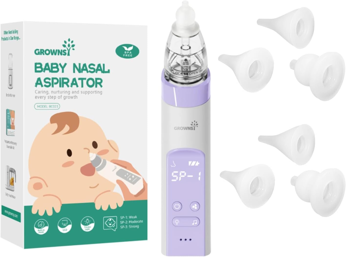 SAFETY AND COMFORT: GROWNSY baby nose sucker is equipped with 6 tips from food-grade silicone, the soft and flexible material ensures it is gentle on your baby’s sensitive inner surfaces of the little noses.