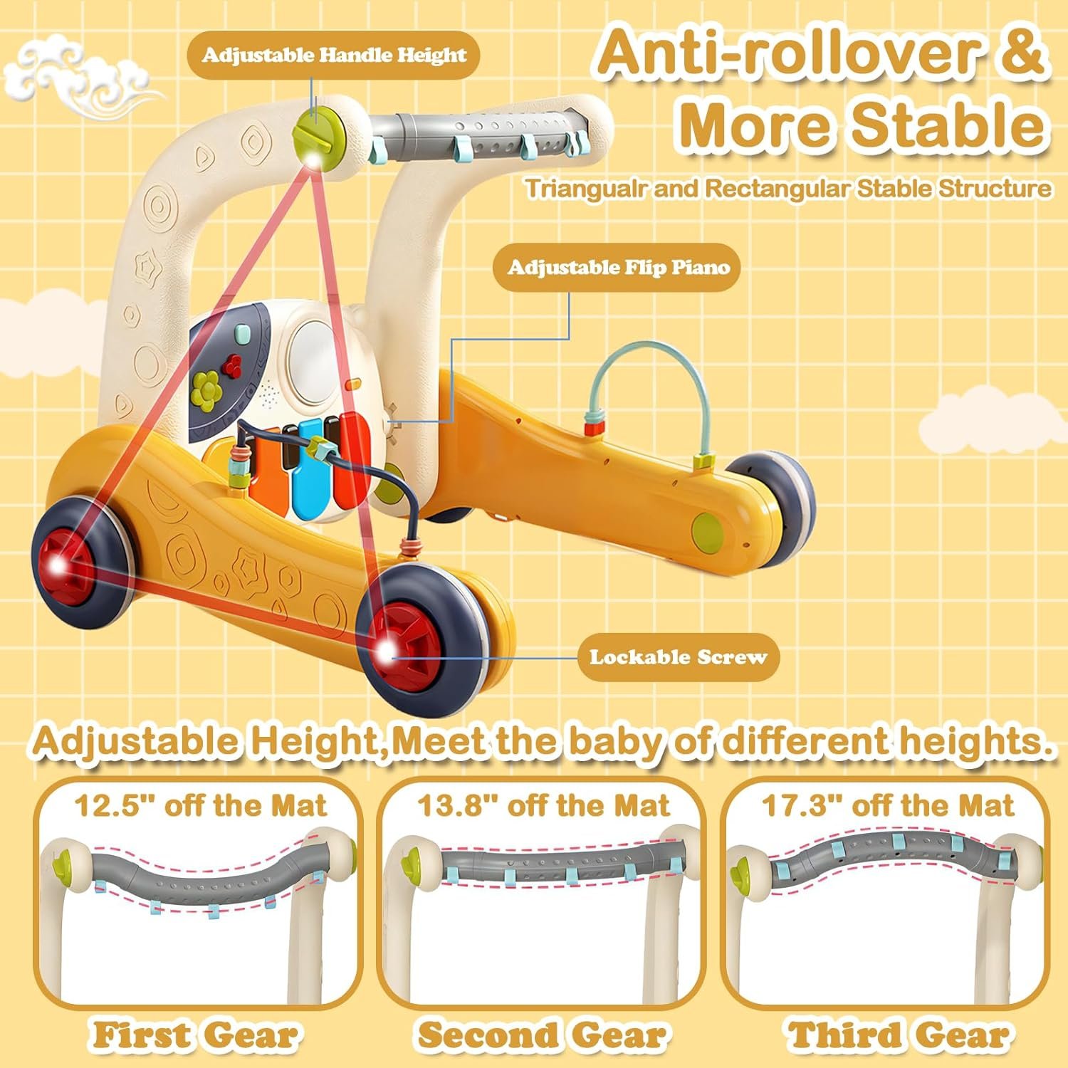 Baby kick mat activities gym center playmats for Infants toddlers 0-12 Months.The 3-In-1 Baby gym kick and play piano mat provides a very joyful activity center for baby to lie down and play, sit and play, push the walker.Baby can use this learning walker to study walking. Adjustable Height for your little one. TIPS: If the baby uses a walker to learn to walk, an Adult must accompany the child to avoid falling or accidents!The piano keyboard can be taken out to play. Toddlers can take it anywhere.The baby activity center also can be a good tummy time mat. Baby can lay down and play the rattle and piano by themselves.