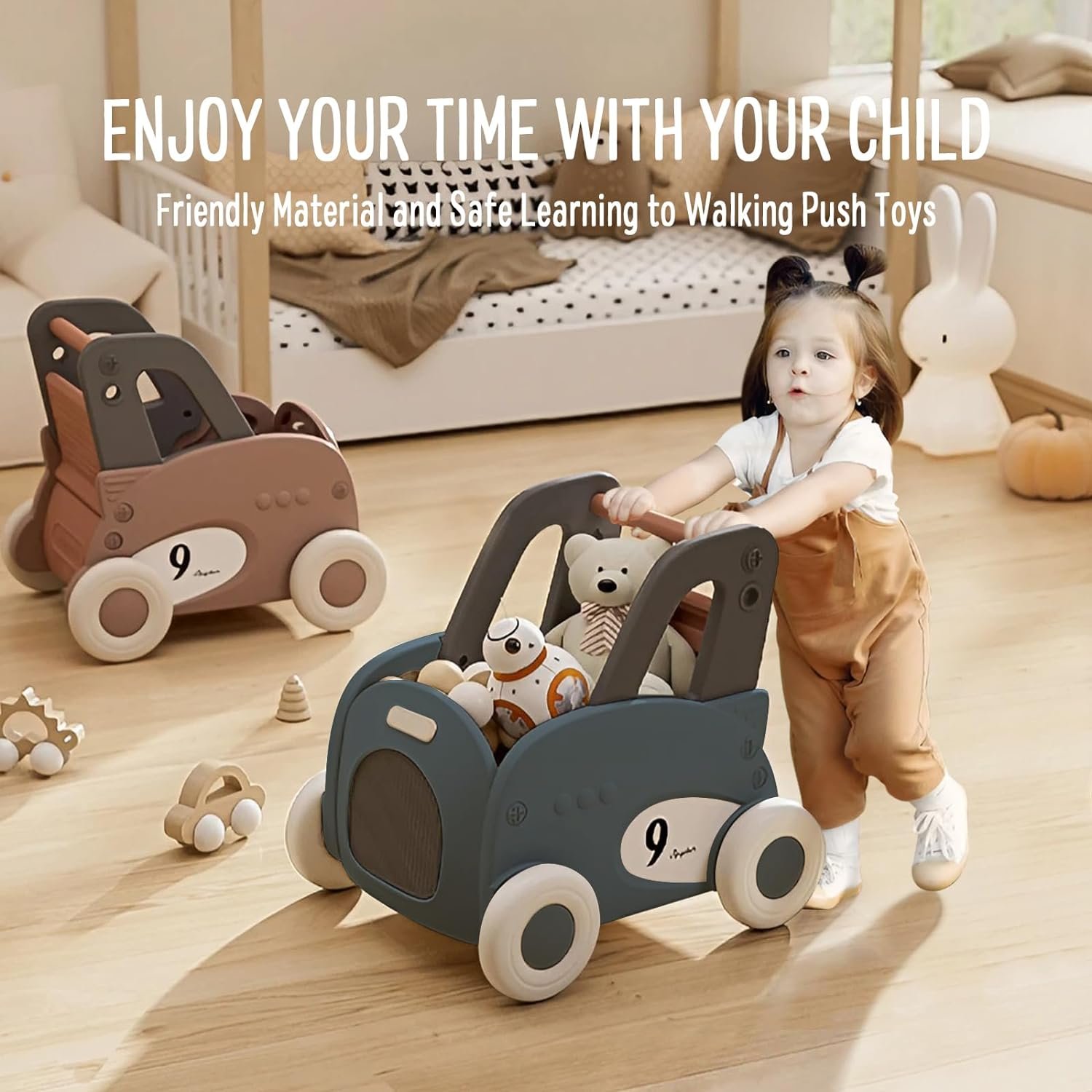 PERFECT GIFT FOR LITTLE ONE- With its natural and bright color, this baby push walker toy is suitable for any room. the baby push walker is perfect birthday or Christmas gift for children at different stages of development