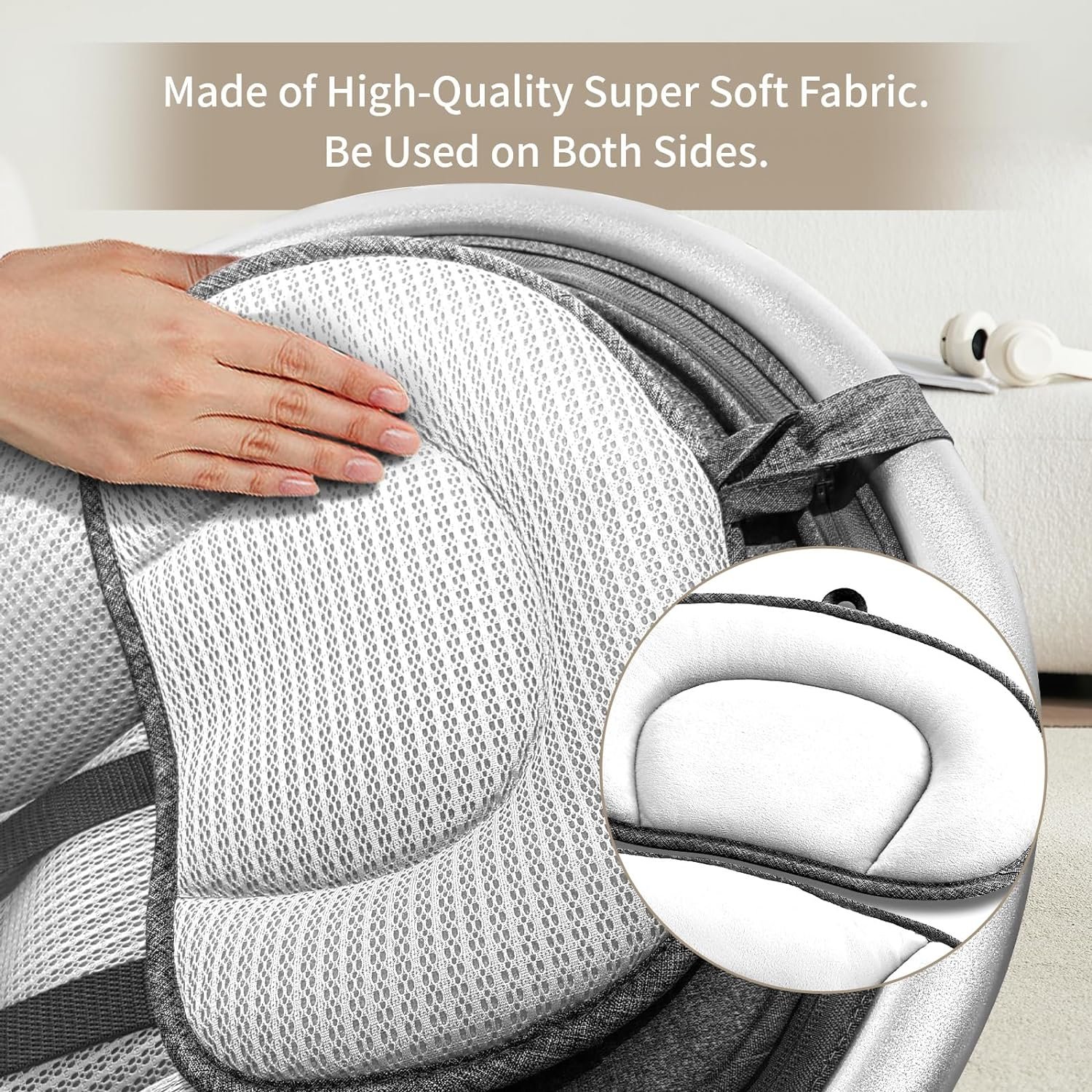 Material of Portable Baby Swing: The Seat Cover is made of soft polyester fiber, offering a cozy place for your newborn. And it can be used on both sides.