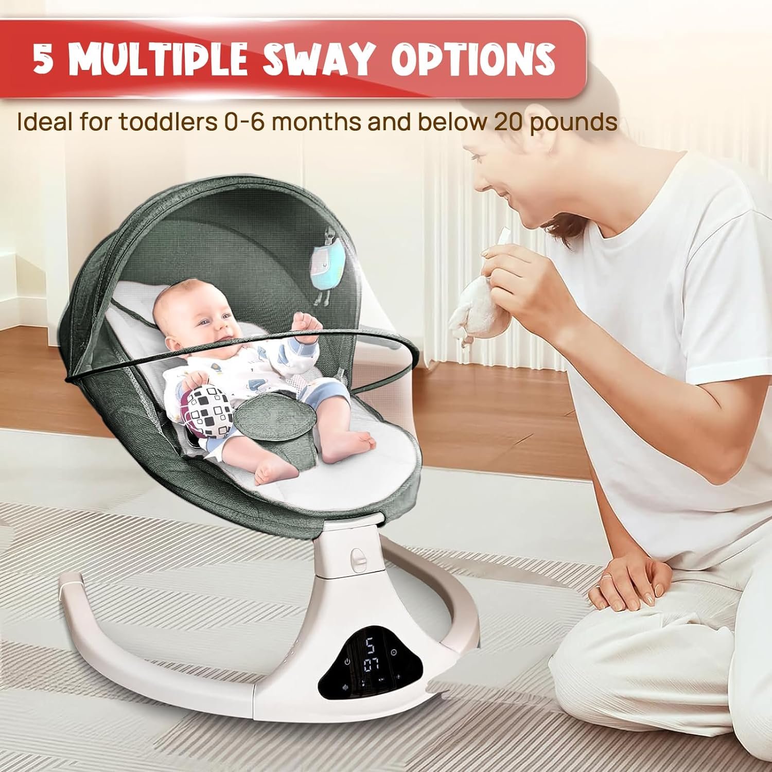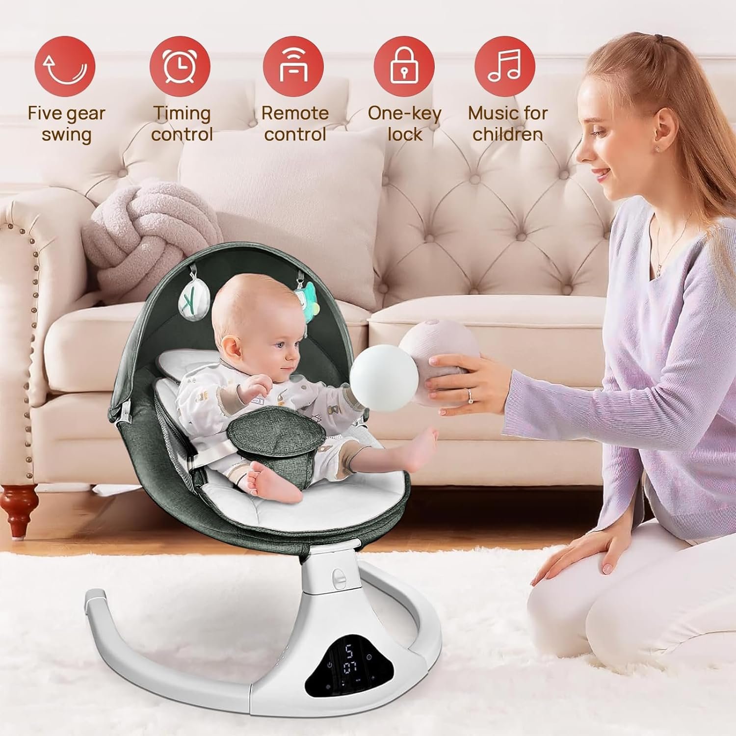 【Music Speaker】: The baby swing is equipped with a music speaker that can play soothing lullabies, which can provide a comfortable and quiet rocking environment to help your baby fall asleep.