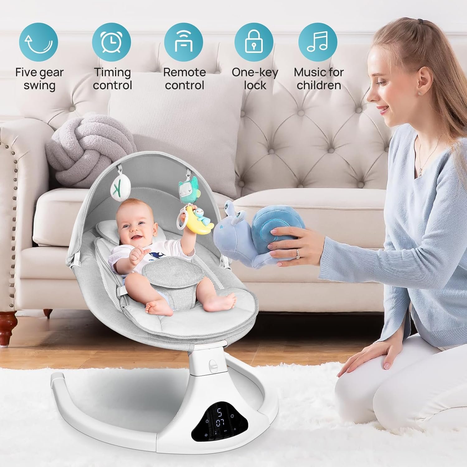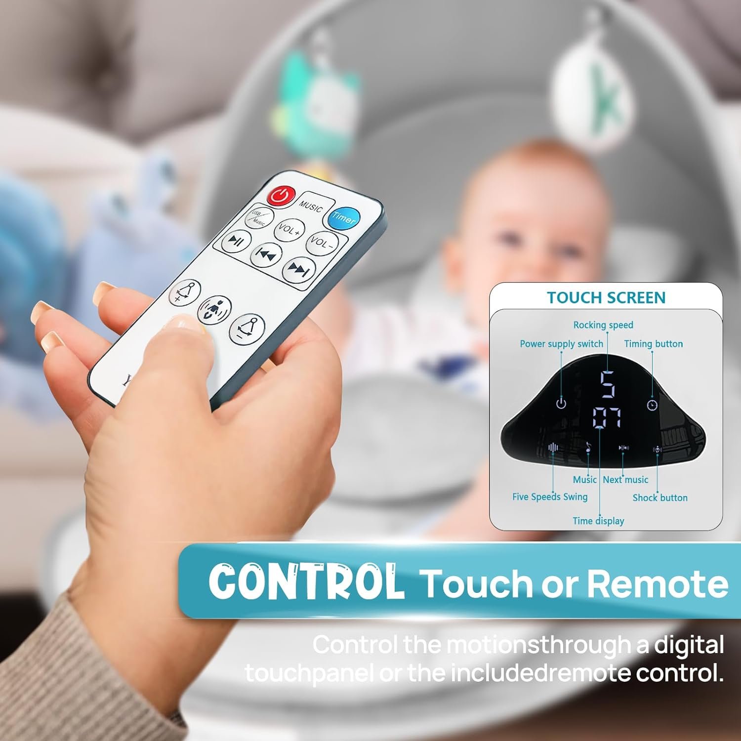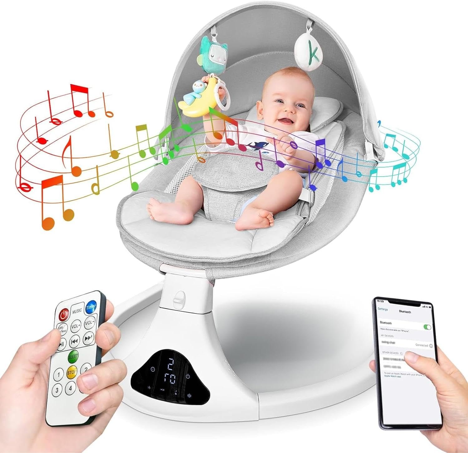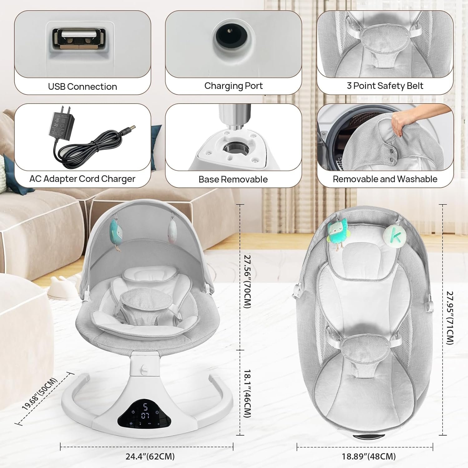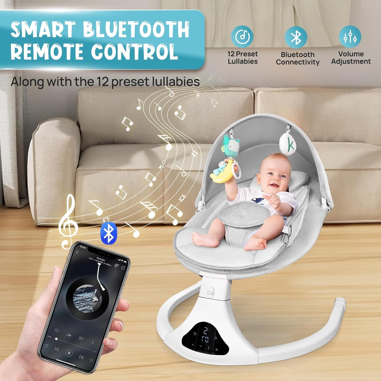 【Bluetooth Music Player】:The electric baby swing for baby features 12 preset lullabies, supports Bluetooth and USB connectivity, allowing you to play your little one’s favorite music.