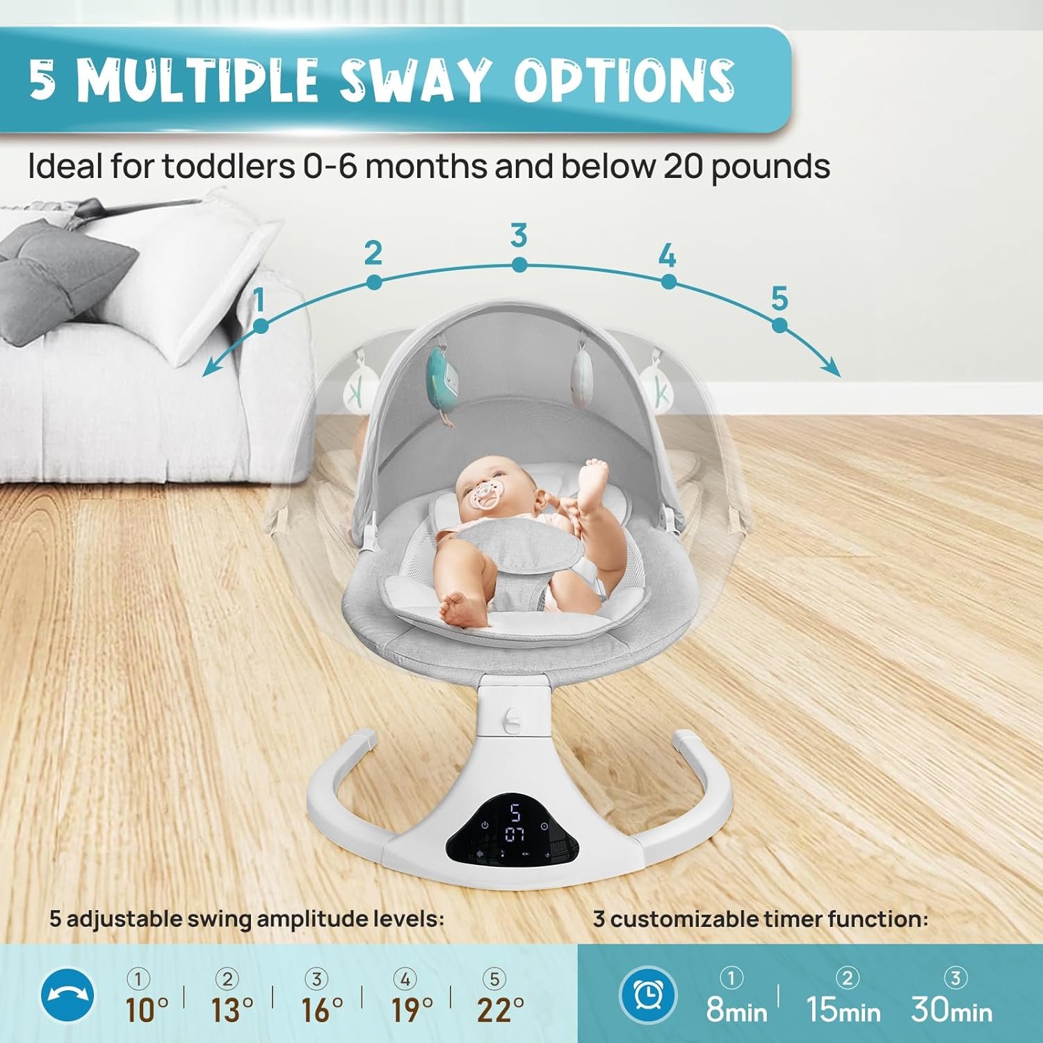 【Great for infant】Riviplou baby swings for infants to toddler offers 5 natural swing speeds, 3 adjustable cozy seat positions, automatic motion detection, soft cushions and adjustable pillow. Comfort and safety, the top choice for your baby’s growth. Ideal for babies 0-6 months and below 20lbs.