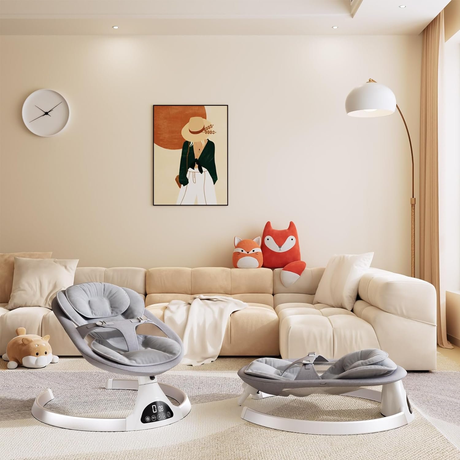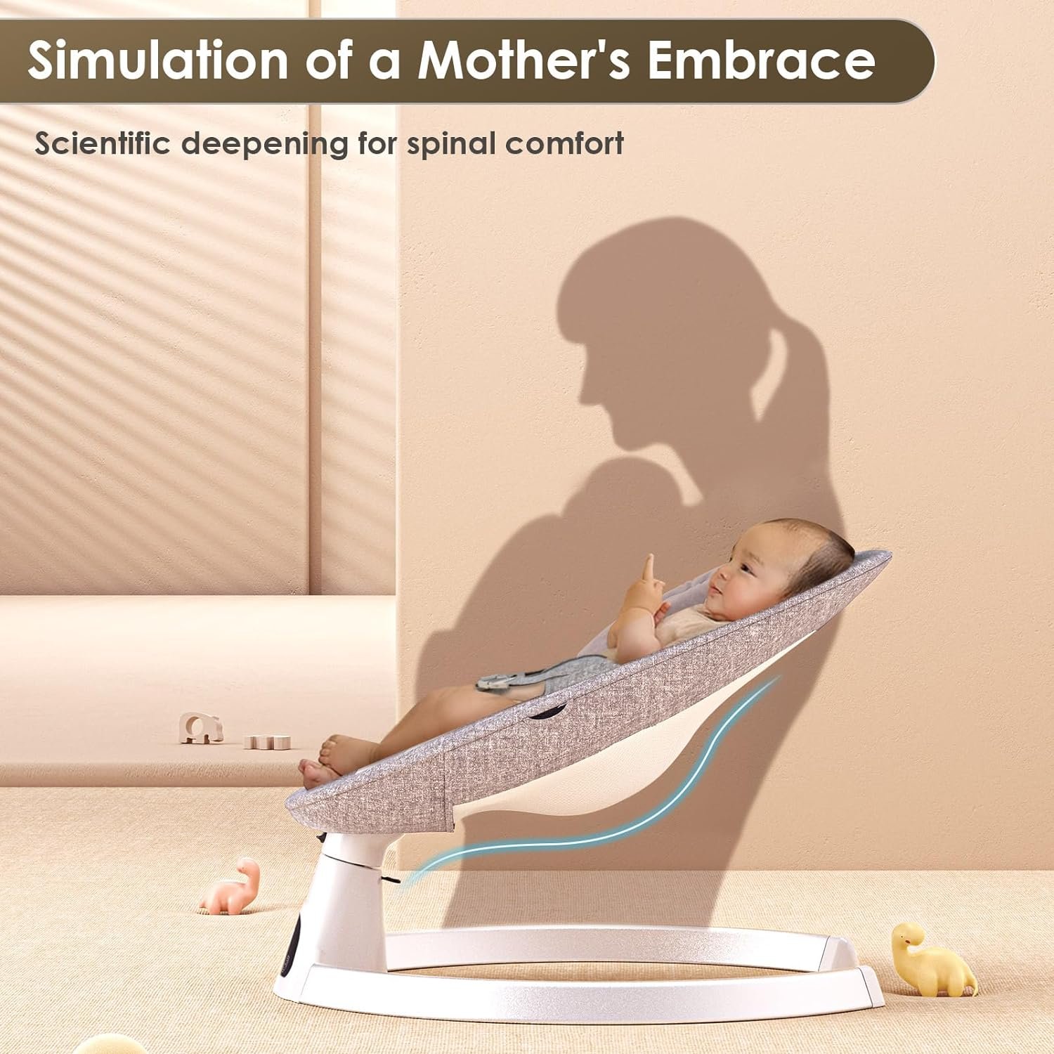 📱【Exclusive App and Bluetooth Player Function】- We are the only brand in the market with an exclusive App, in addition to using remote or touch screen control, our App can be simpler and smarter to control the electric baby swing, the distance and signal issues are less restrictive. Meanwhile, the Bluetooth play function allows you to play your baby’s favorite music from your phone, providing your baby with peaceful or joyful moments.